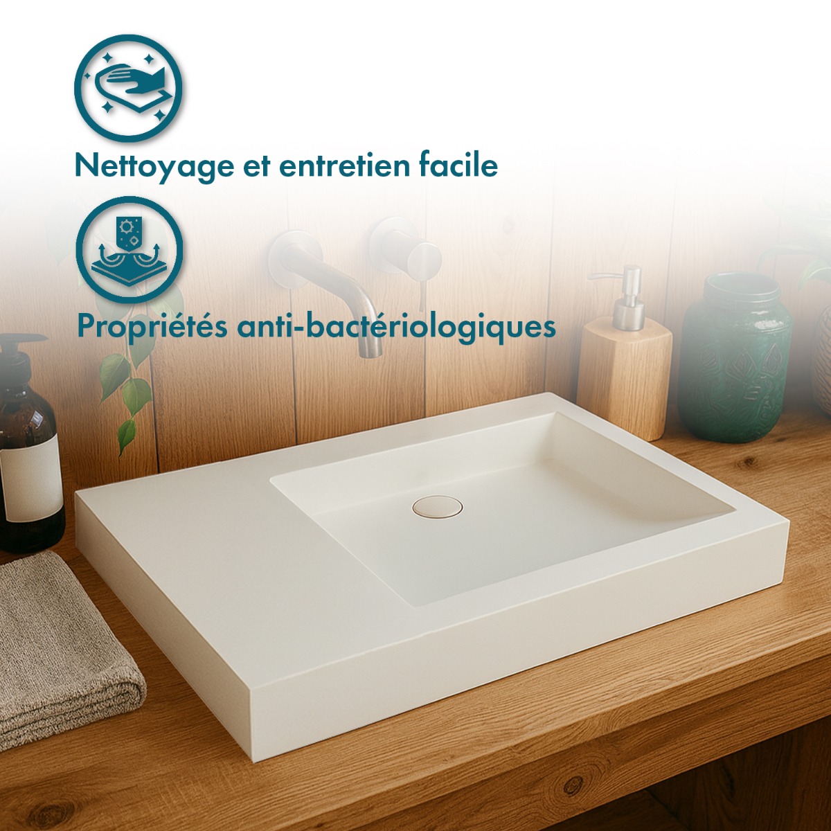 Vous êtes à la recherche d’une vasque moderne et tendance pour votre salle de bains ? Découvrez notre vasque Passoa. Ce lavabo de 80 cm sans trop-plein sera parfaitement adapté si vous souhaitez éviter les débordements et les projections d'eau dans votre salle de bains. De plus, il s'intégrera à merveille dans n'importe quel type de décoration, de la plus classique à la plus tendance, et allie esthétisme, confort et gain de place, grâce au large espace qu’il offre sur sa gauche.