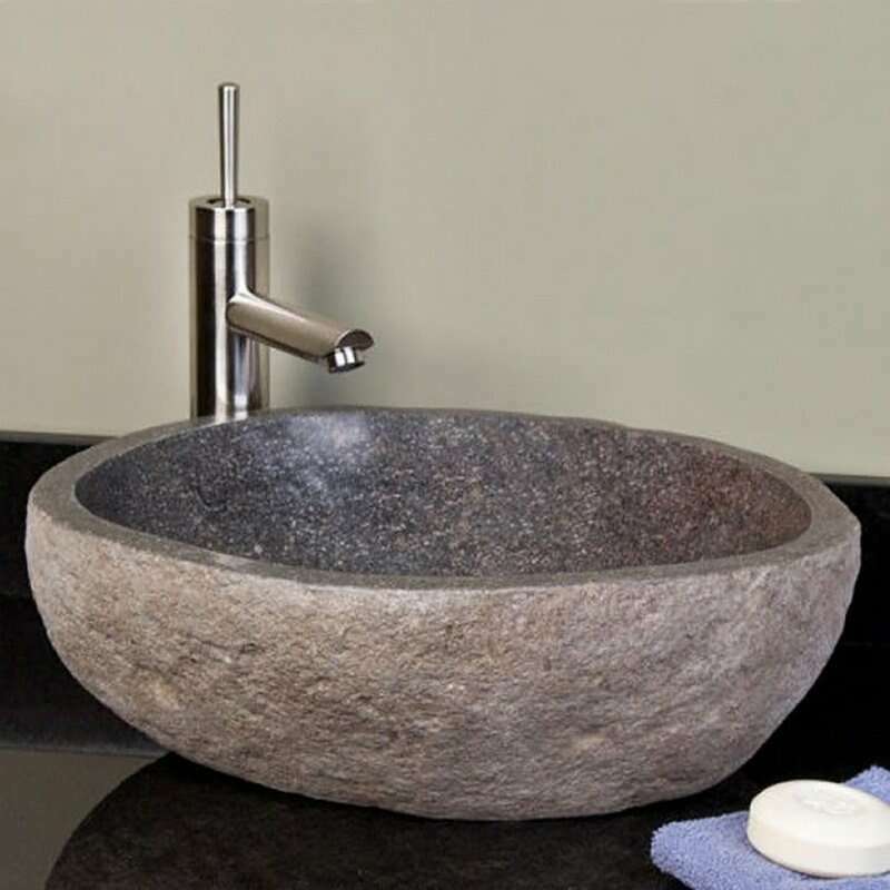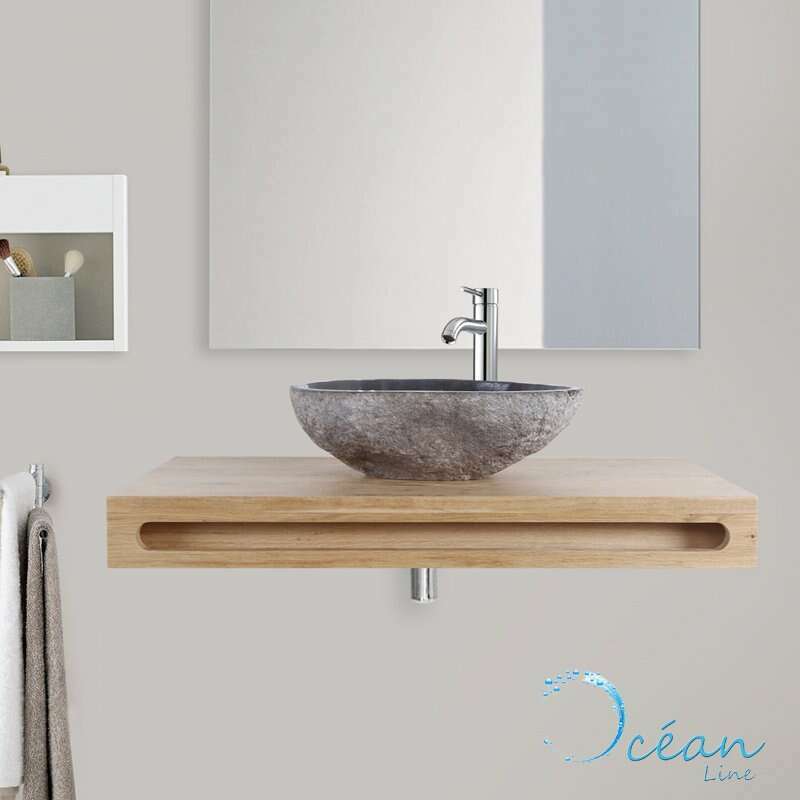 Vasque salle de bain à poser 40 cm en pierre de rivière, Galéo