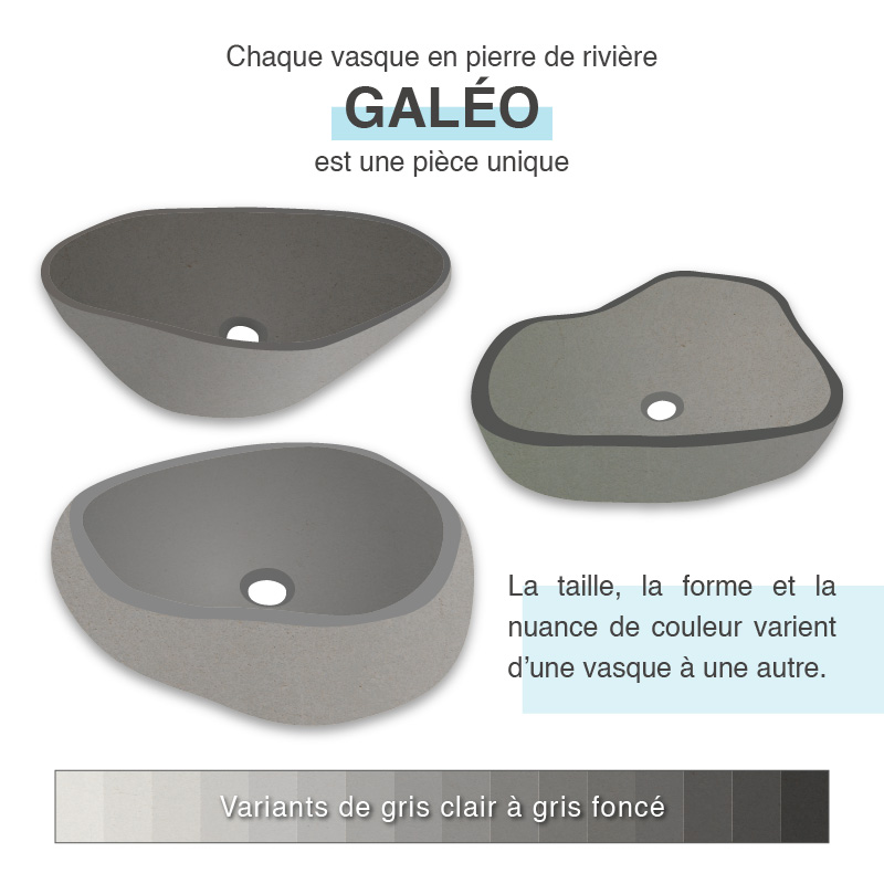 | Libellé | Vasque salle de bain à poser 40 cm en pierre de rivière, Galéo |