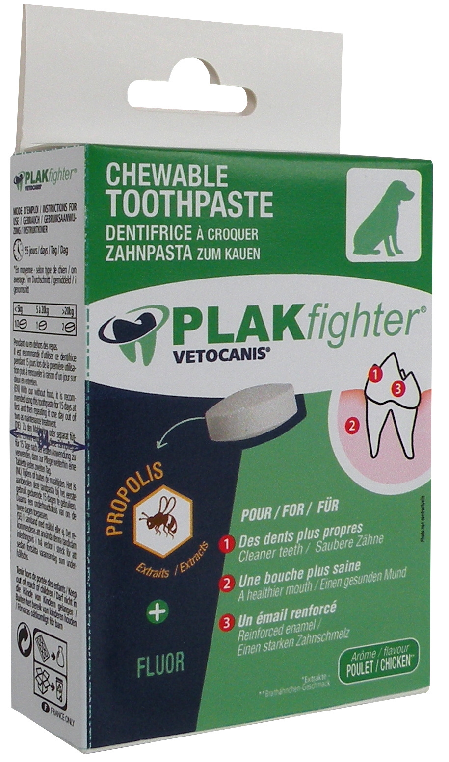 Plus produit Comprimés à croquer anti-tartre qui, par action mécanique, aident à éliminer le tartre ; enrichis en fluor pour renforcer l'émail ; propolis pour soutenir les défenses immunitaires.