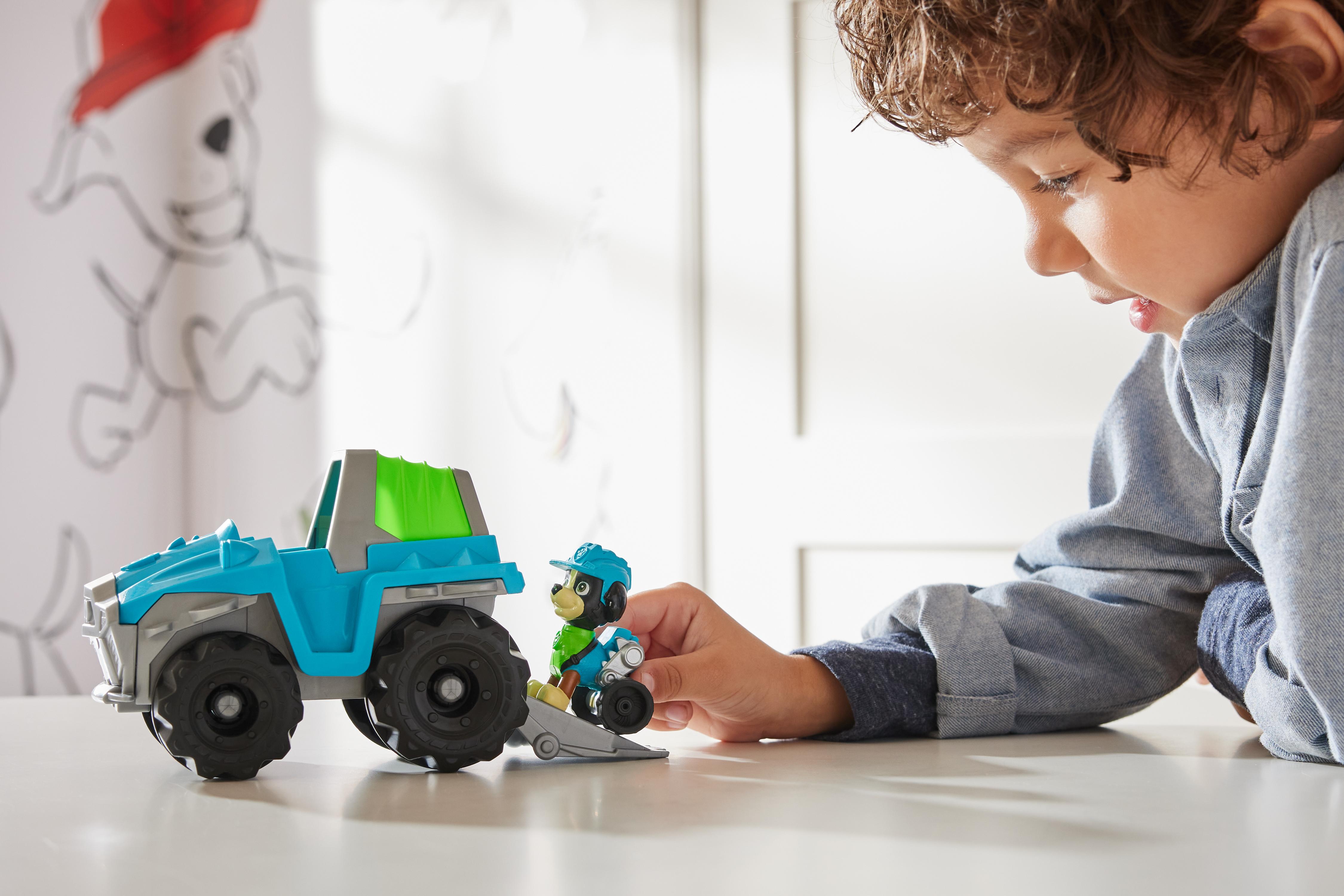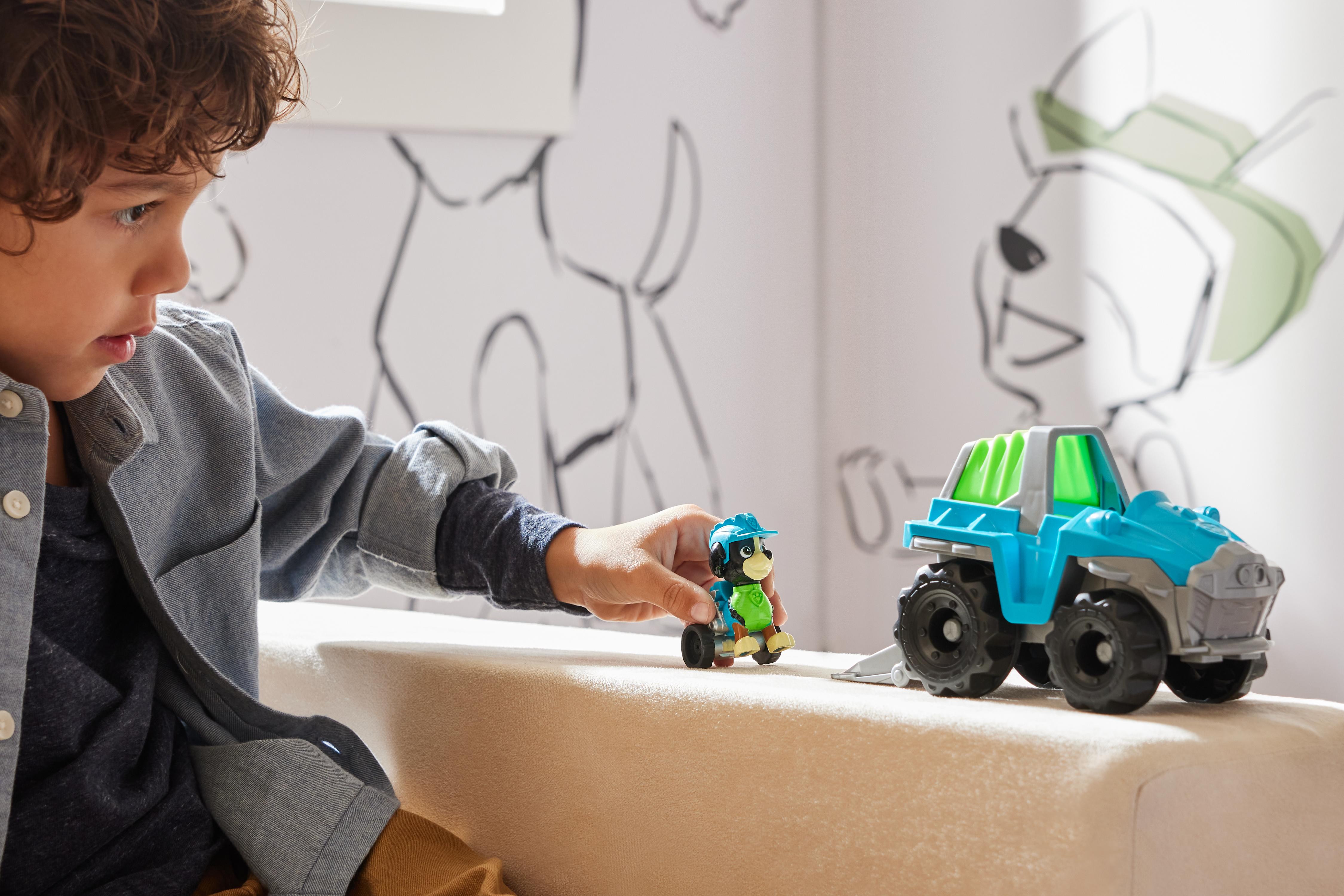 Les véhicules de la célèbre série TV PAW Patrol, la Pat' Patrouille. Tous les véhicules roulent et ont exactement les mêmes accessoires que dans la série. Véhicule d'environ 15 cm de long. Figurine amovible incluse. Véhicule fabriqué en partie avec du plastique recyclé pré-consommation. Boîte ouverte. A partir de 3 ans.