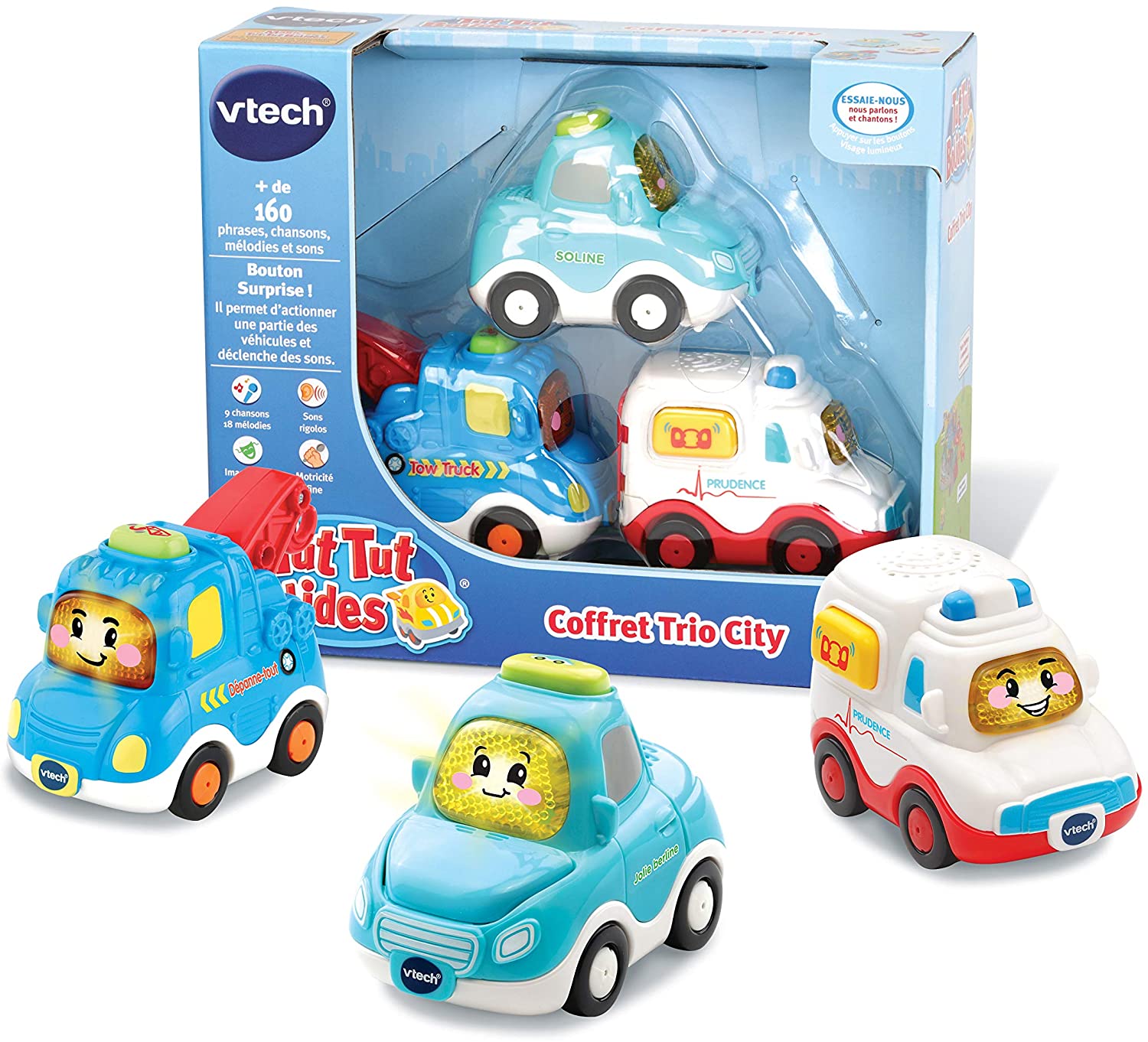 Un super camion de pompier 2 en 1 : camion pompier et caserne !Différentes actions :– La grande échelle se déplie et tourne à 360°– Les portes du camion s’ouvrent et se transforment en route – 1 bouton sonore sirène– Nombreux éléments à manipuler3 zones magiques déclenchent phrases, sons et musiques au passage des Tut Tut Bolides.Compatible avec tous les univers Tut Tut Bolides.Inclus : 1 véhicule électronique « Clémence, SOS ambulance ».2 piles LR03 incluses.
