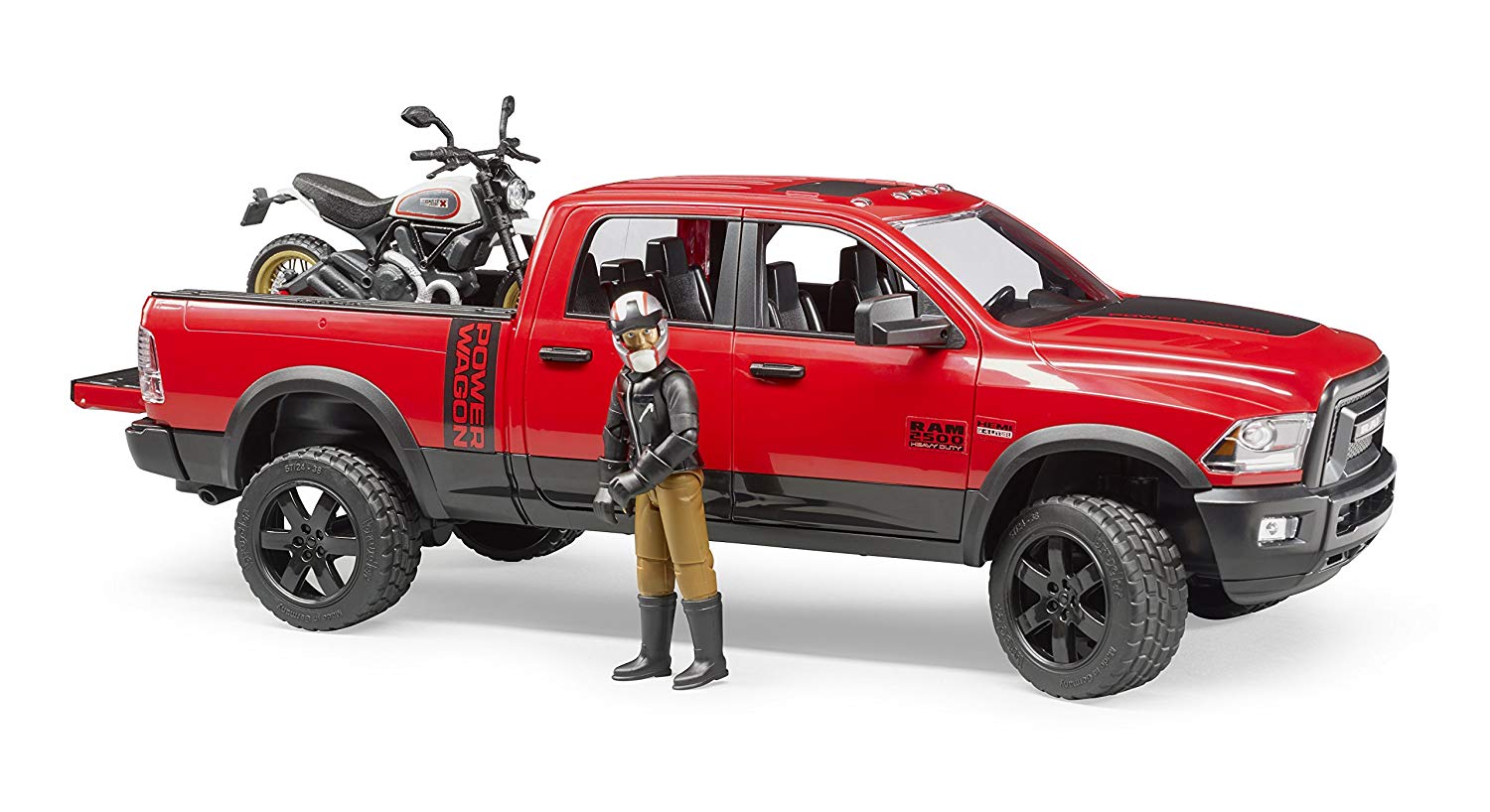 VEHICULE RAM 2500 POWER WAGON AVEC MOTO SCRAMBLER DUCATI DESERT SLED ET PERSONNAGE