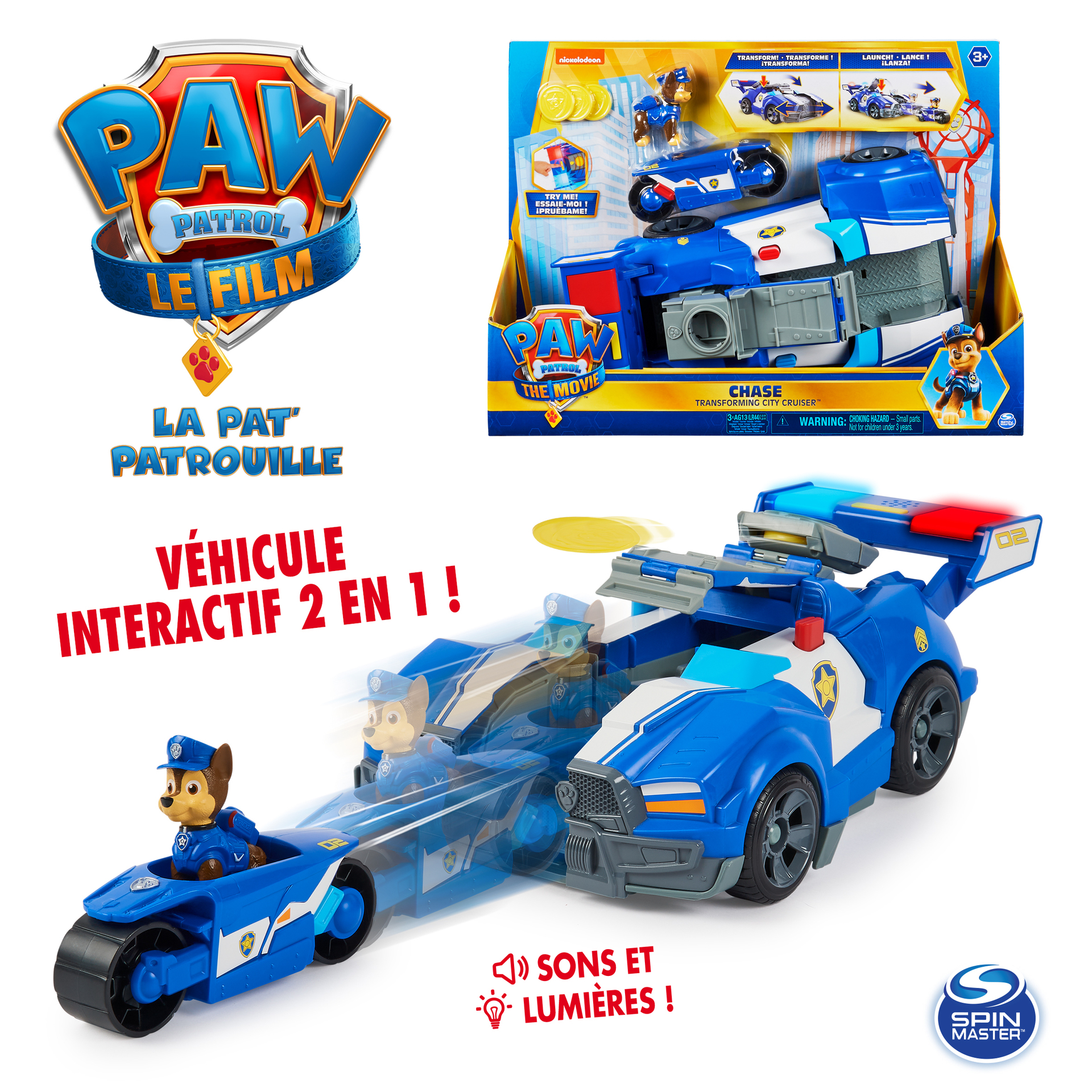 | La boîte contient | 1 véhicule interactif 2 en 1 + 1 figurine de Chase |