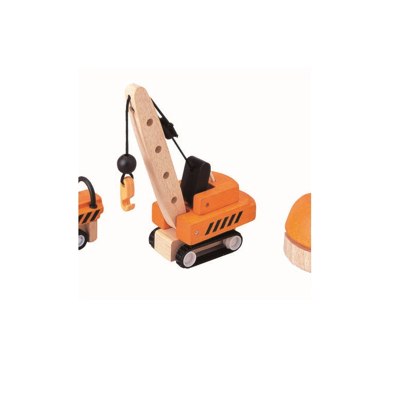Découvrez ce set de 3 véhicules de construction comprenant un chariot élévateur, une grue sur chenilles et un camion-benne. Chaque véhicule a sa fonctionnalité. Un set de véhicules en bois indispensable à tout chantier !