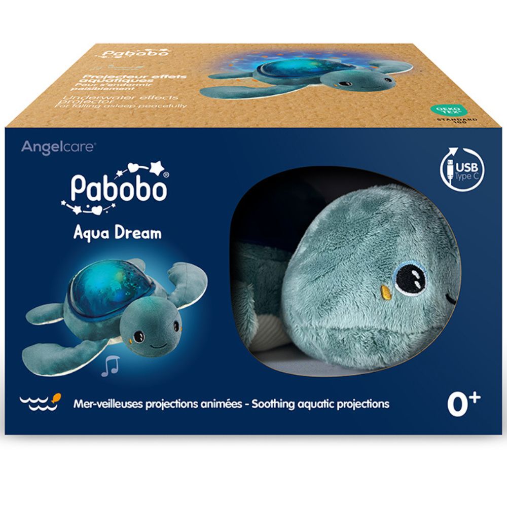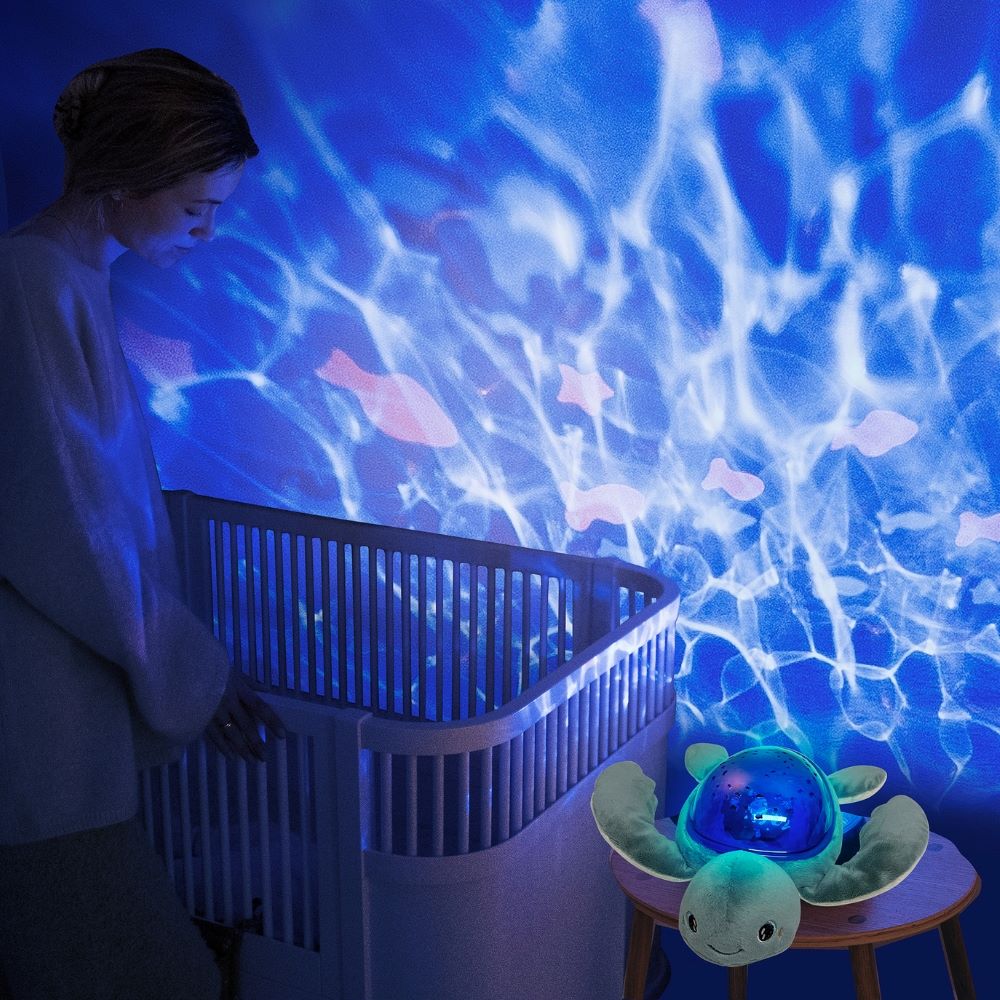 La douce Tortue Aqua Dream projette des vagues et petits poissons orange qui bougent, pour endormir votre enfant paisiblement.