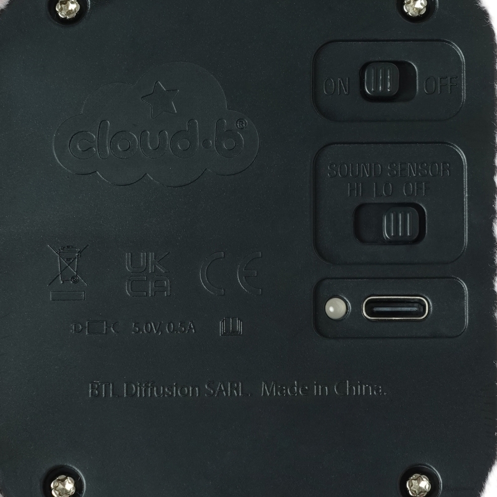 Douce peluche la journée, elle se transforme en veilleuse rassurante la nuit venue. Cette veilleuse projette des images de fonds sous-marins et l'intensité lumineuse peut être ajustée. Quatre types de sons apaisants sont disponibles : 2 bruits blancs (océan) et 2 mélodies avec 6 niveaux sonores différents. Une minuterie de 23 minutes avec arrêt automatique est intégrée. Grâce à sa technologie LED, le projecteur reste froid au toucher et parfaitement sûr, même sous les draps. La veilleuse se recharge grâce à un câble USB-C (non fourni).