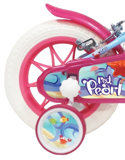 Vélo 12" Fille "Sea-Life" pour enfant de 3 à 5 ans avec stabilisateurs à molettes et Panier avant