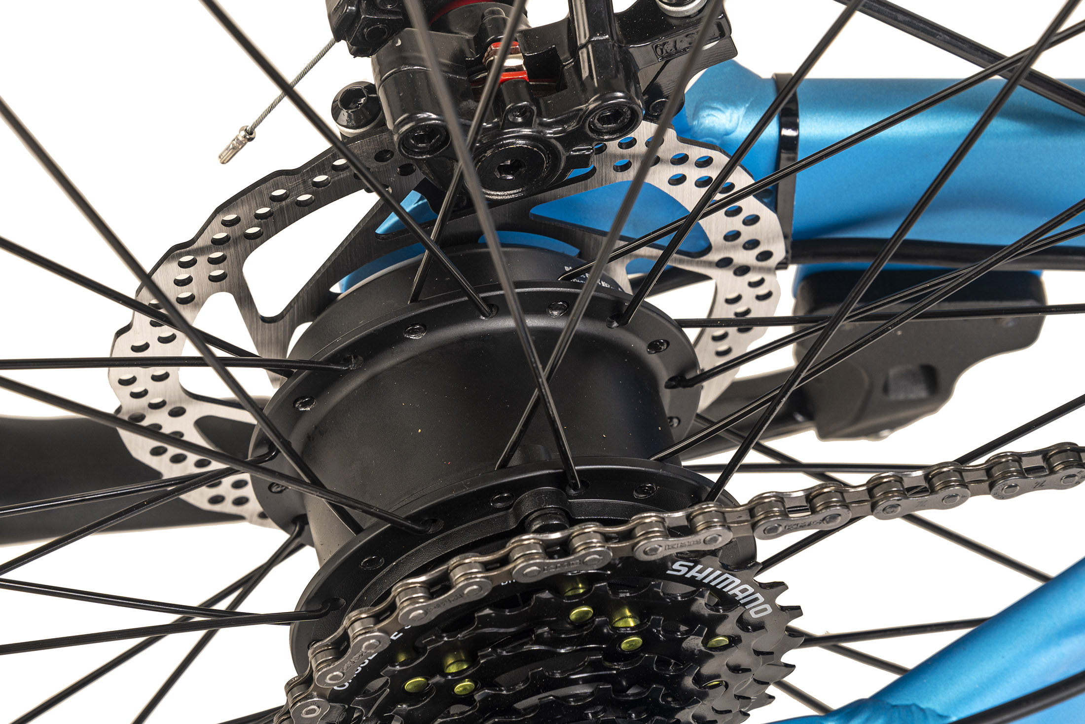 Moteur VINKA dans la roue arrière : Le vélo est équipé d'un moteur sans balais sur la roue arrière qui est activé par le boîtier présent sur le guidon. Ce moteur se coupe automatiquement à partir d'une vitesse de 25 km/h, comme le veut la législation. VINKA se concentre sur le développement et la fabrication de capteurs couple, de systèmes d'entraînement central et de systèmes d'entraînement de moyeu pour l'industrie des vélos électriques.