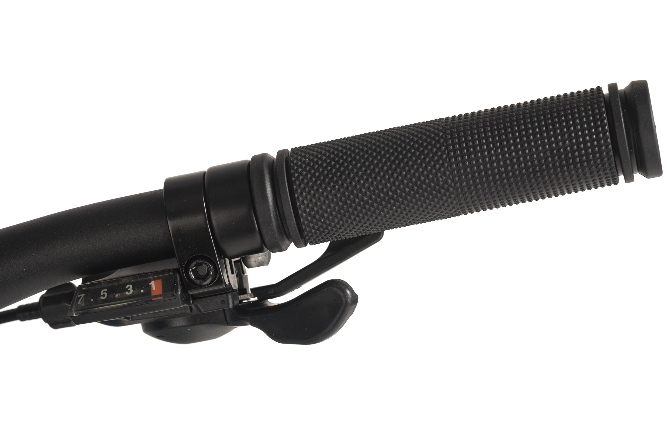 Les leviers de vitesses SHIMANO sont presque entièrement dissimulés sous les leviers de frein, ce qui leur confère un look épuré. Un petit indicateur de vitesse est bien sûr tout de même visible.