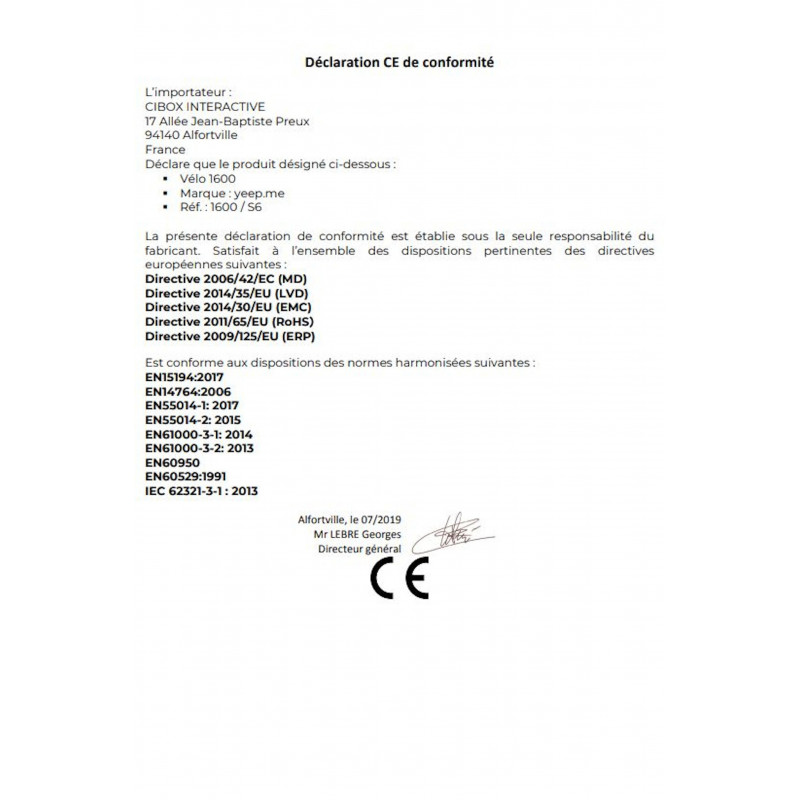 | Libellé | Vélo à assistance électrique YEEP ME - YEEPME1600 |