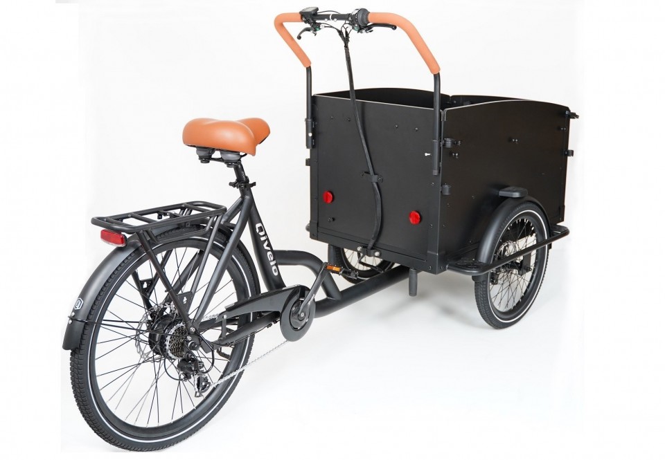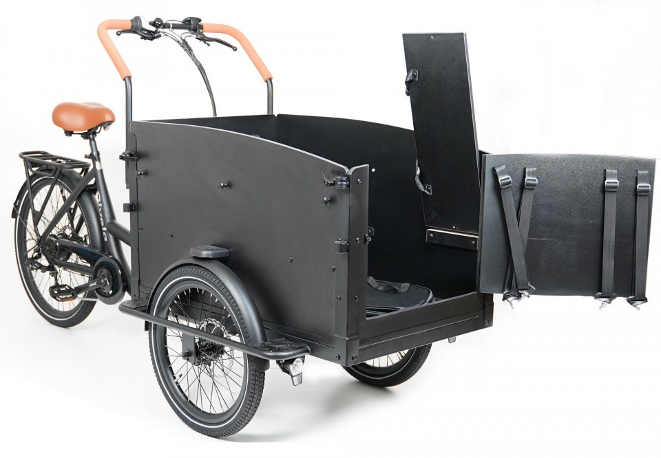Vélo cargo - Triporteur électrique noir avec porte - 522Wh - Shimano 7 vitesses
