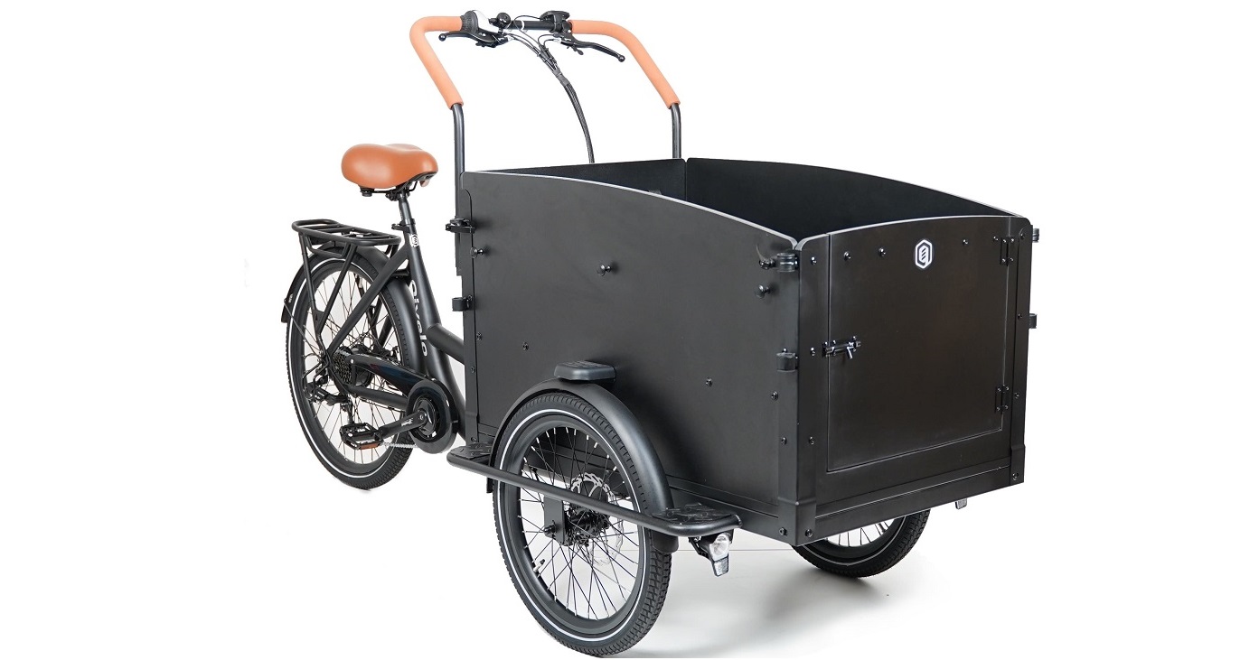 Libellé Vélo cargo - Triporteur électrique noir avec porte - 522Wh - Shimano 7 vitesses