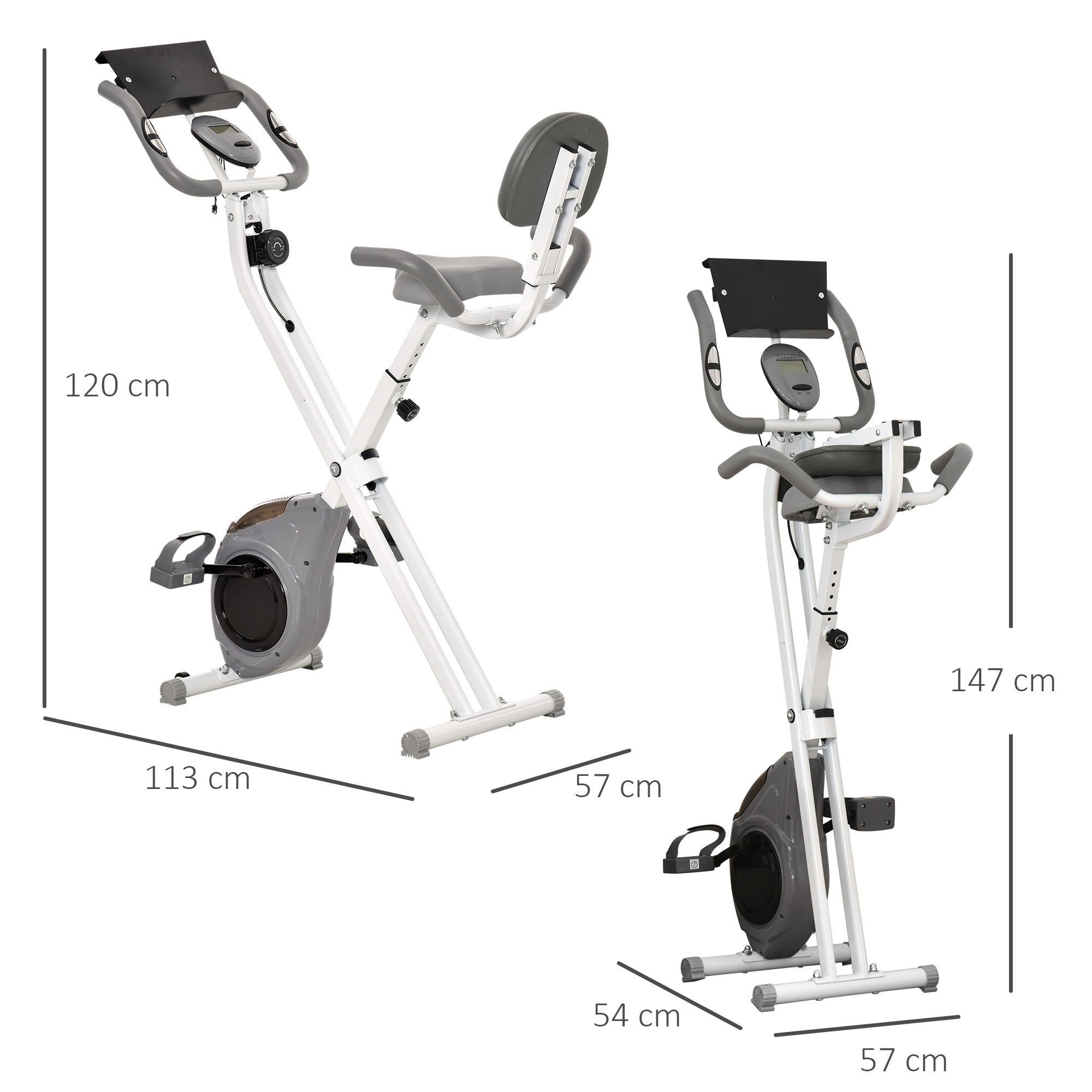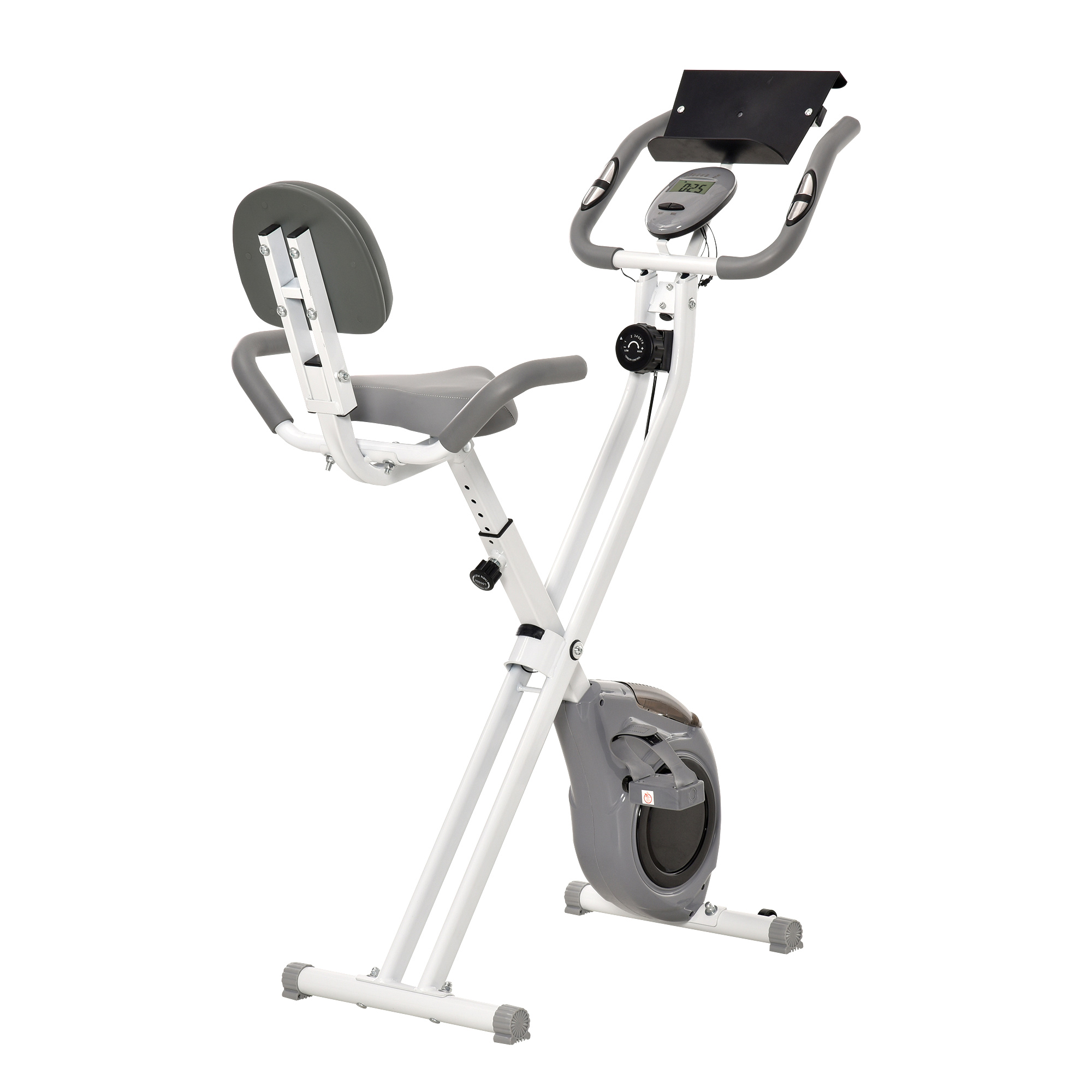 | Libellé | Vélo d'appartement pliable grand confort dossier selle réglable poignées ergonomiques écran LCD multifonction support tablette acier blanc gris |