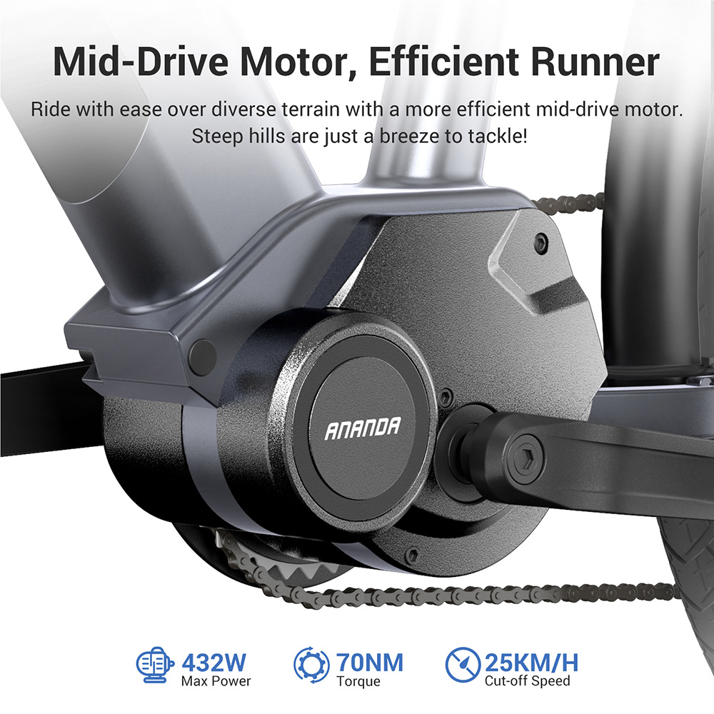 Le vélo électrique C1 ST est doté d'un puissant moteur sans balai à entraînement central qui délivre un couple de 70 Nm, une puissance instantanée maximale de 432 W et une vitesse de pointe de 25 km/h.