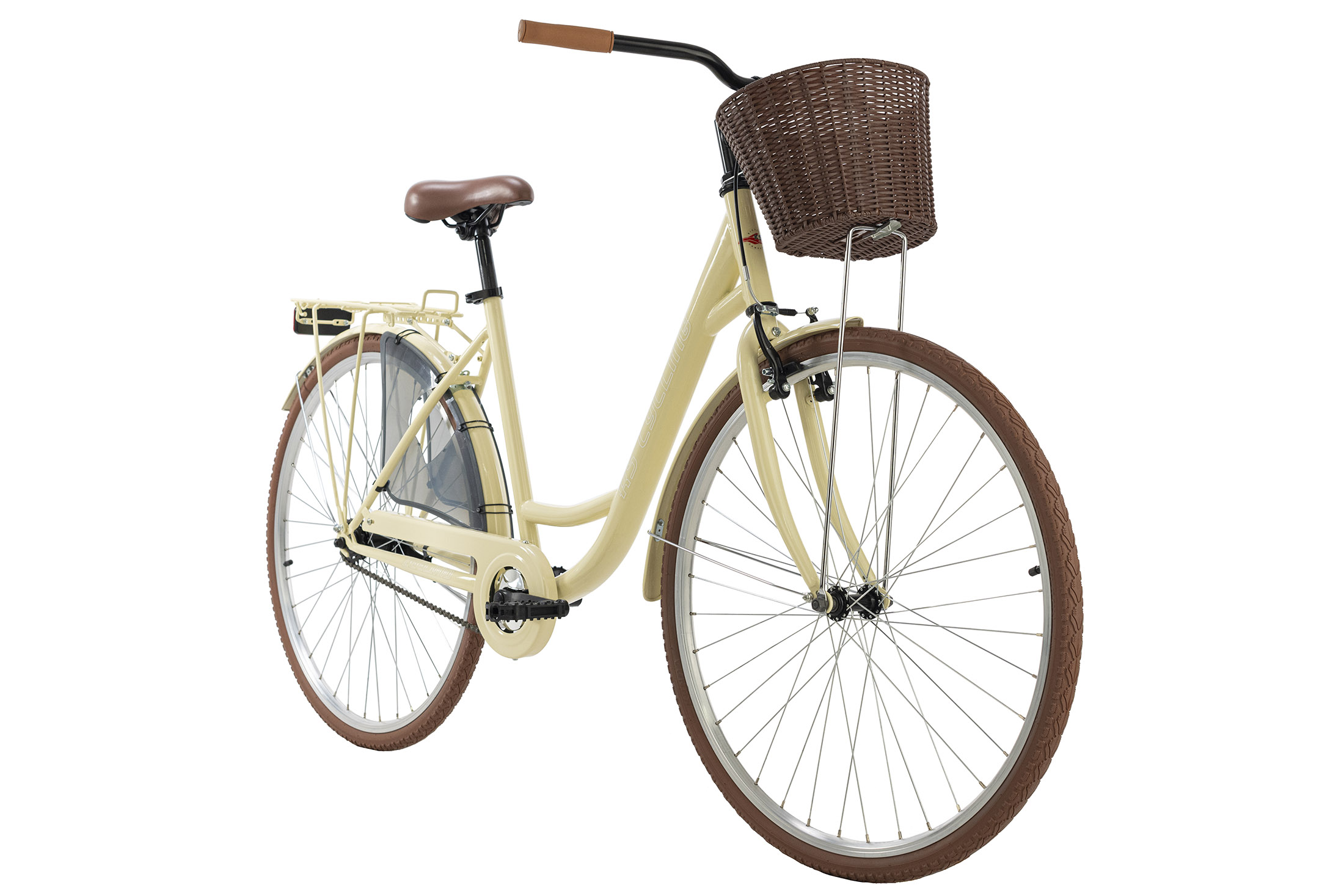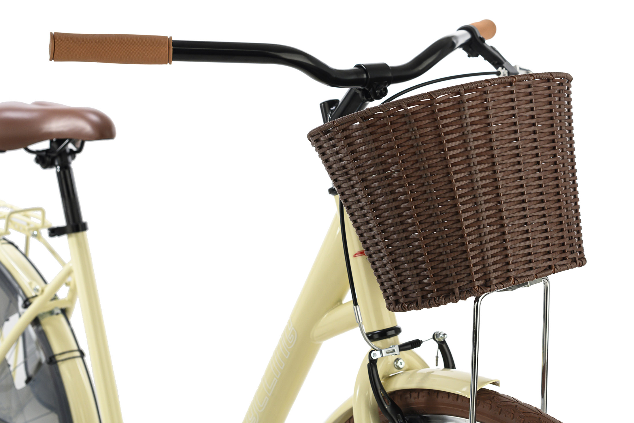 Avec sa couleur de beige, ce vélo fait souffler un vent de fraîcheur. Les pneus, la selle et les poignées couleur crème viennent parfaire le look gracieux du vélo.