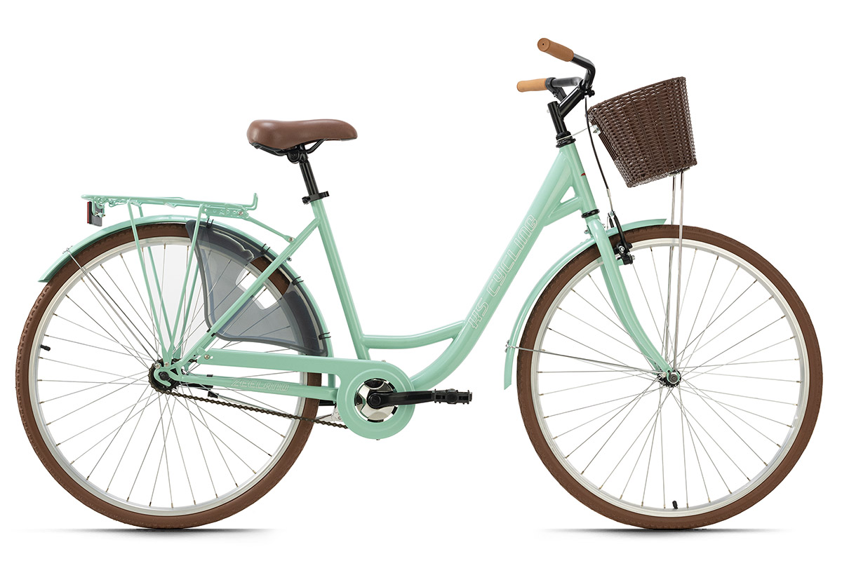 Avec sa couleur verte, ce vélo fait souffler un vent de fraîcheur. Les pneus, la selle et les poignées couleur crème viennent parfaire le look gracieux du vélo.