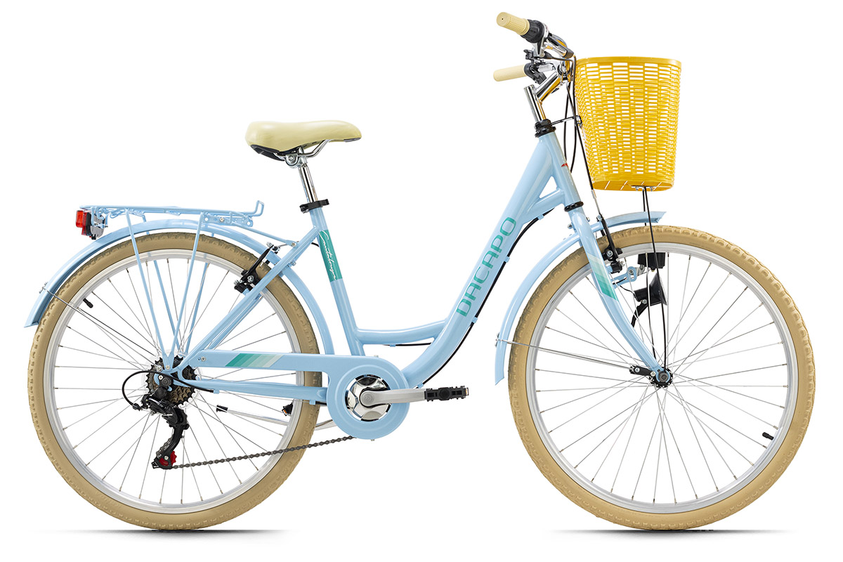 | Libellé | Vélo de ville femme 26'' Cantaloupe bleu avec panier TC 48 cm Dacapo |