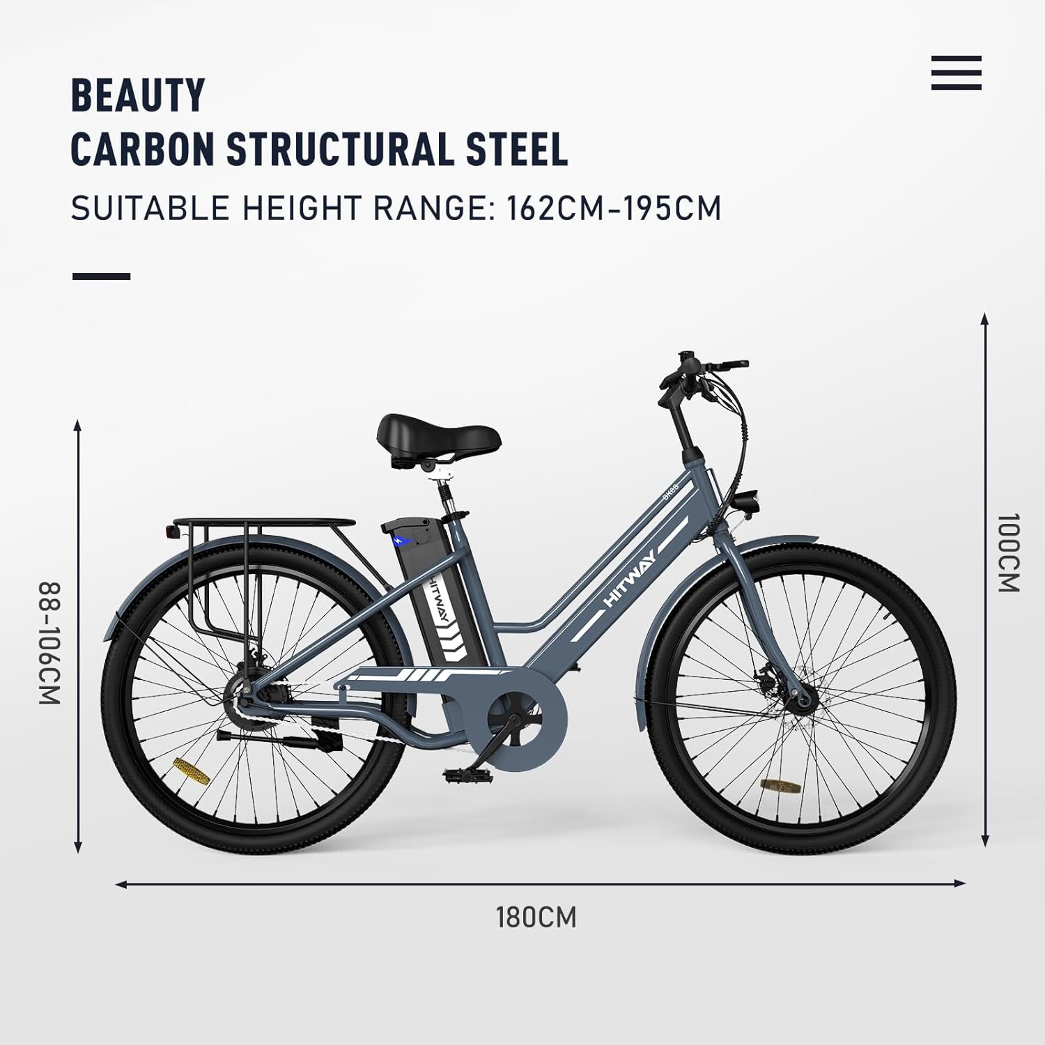 HITWAY Vélo Électrique 26 Pouces Vélo Électrique Femme et Homme,Moteur 250W,Batterie 36V/10.4Ah,3 Vitesses Max 25km/h,Pédalage Assisté,Autonomie 35-70km,Adulte Unisexe