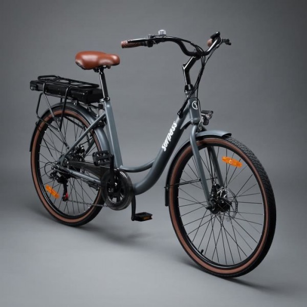 Vélo Électrique de Ville SURPASS SURVAEVILLEGRIS 26'' Gris 6 Vitesses avec Batterie Amovible 10 Ah