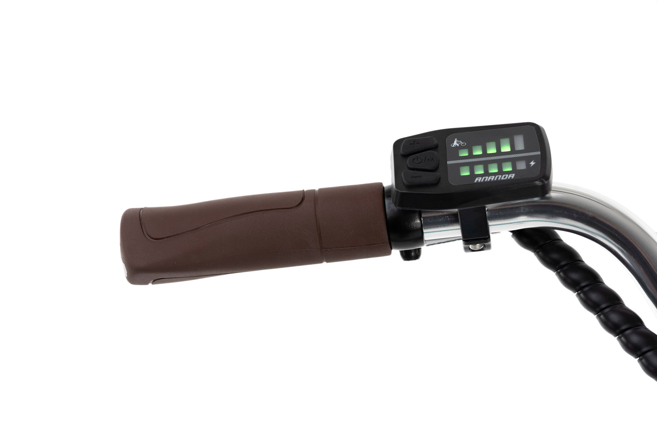 Ce moteur se coupe automatiquement à partir d'une vitesse de 25 km/h, comme le veut la législation. Le moteur se coupe aussi instantanément grâce à des capteurs quand vous actionnez les freins. Le boîtier du guidon vous permet d'une part de choisir entre cinq niveaux d'assistance, et d'autre part de surveiller le niveau de chargement de la batterie grâce aux 5 LED.