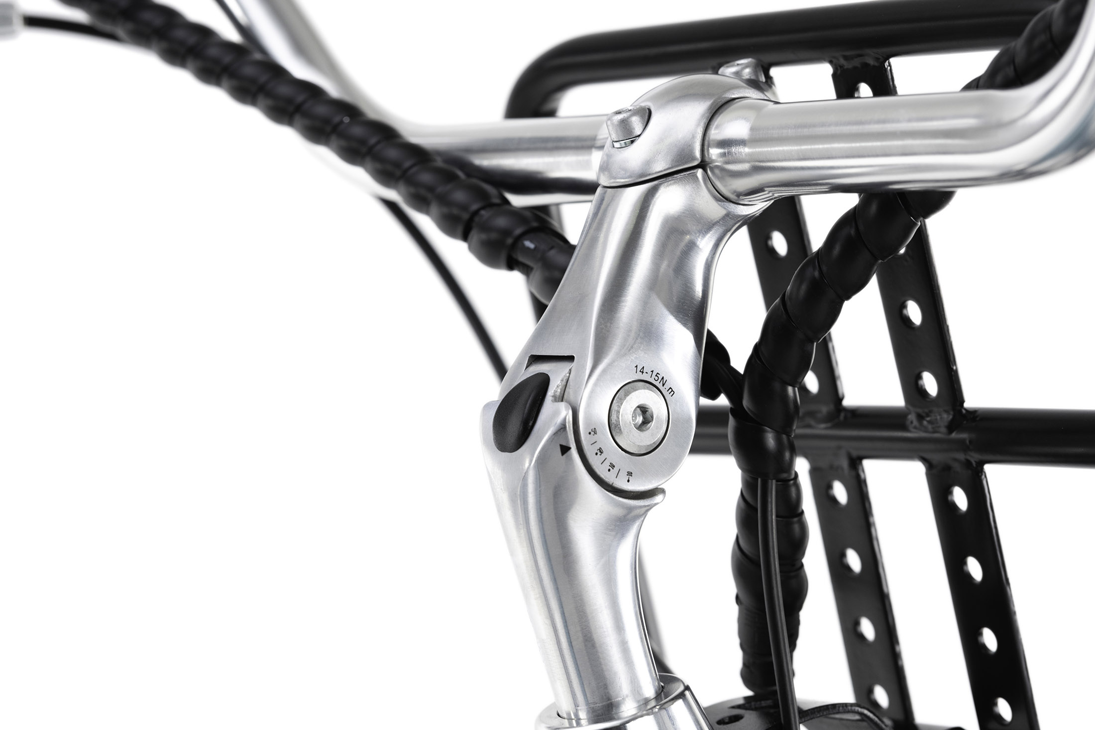 Le CANTALOUPE est également équipé d'un porte-bagages avant et d'un dérailleur Nexus 3 vitesses dans le moyeu (incl. frein à rétropédalage) et est particulièrement léger grâce à son cadre en aluminium.