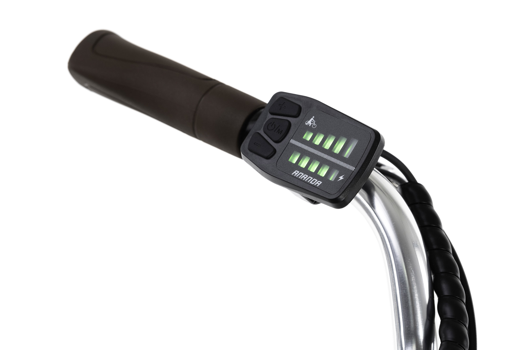 Ce moteur se coupe automatiquement à partir d'une vitesse de 25 km/h, comme le veut la législation. Le moteur se coupe aussi instantanément grâce à des capteurs quand vous actionnez les freins. Le boîtier du guidon vous permet d'une part de choisir entre cinq niveaux d'assistance, et d'autre part de surveiller le niveau de chargement de la batterie grâce aux 5 LED.