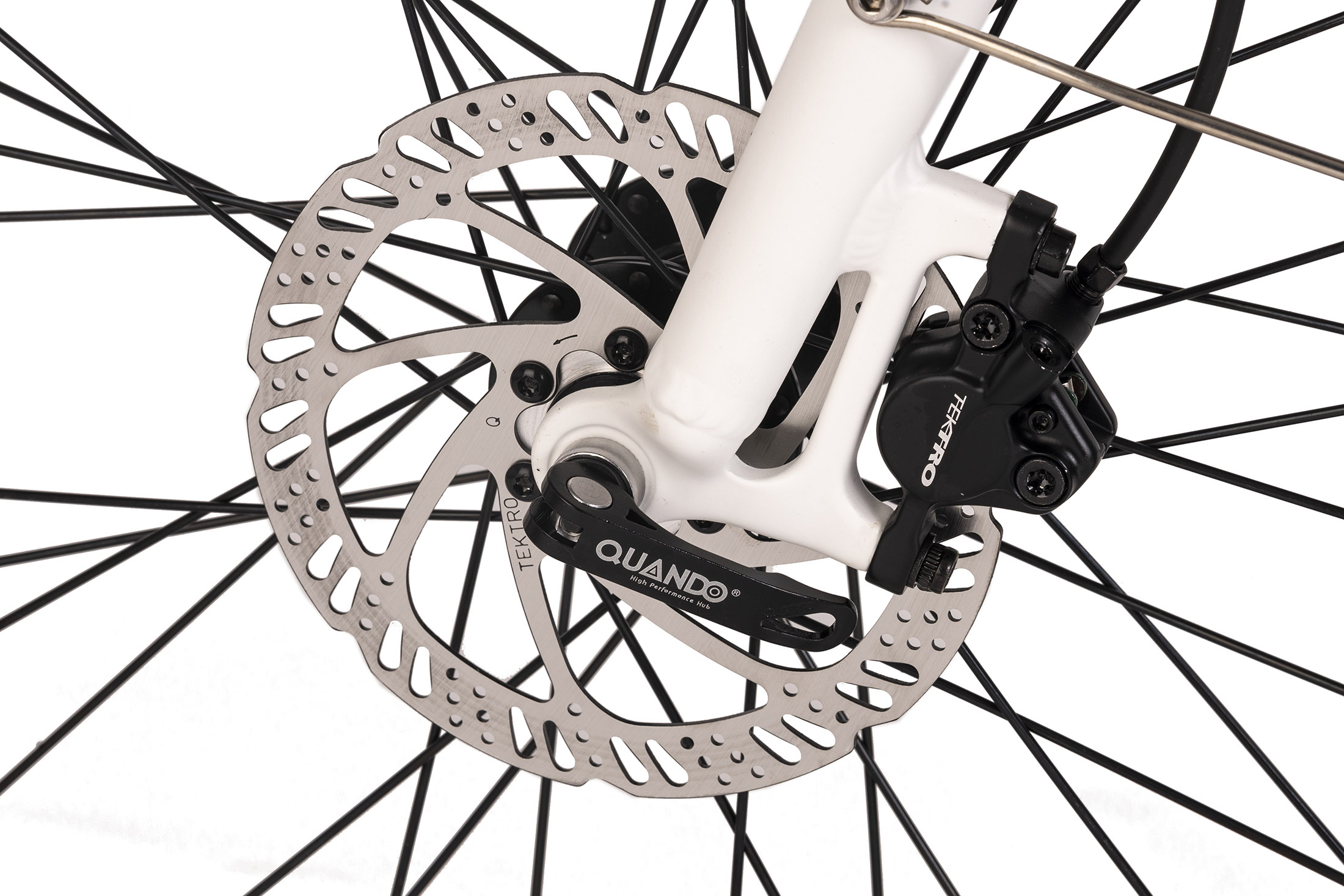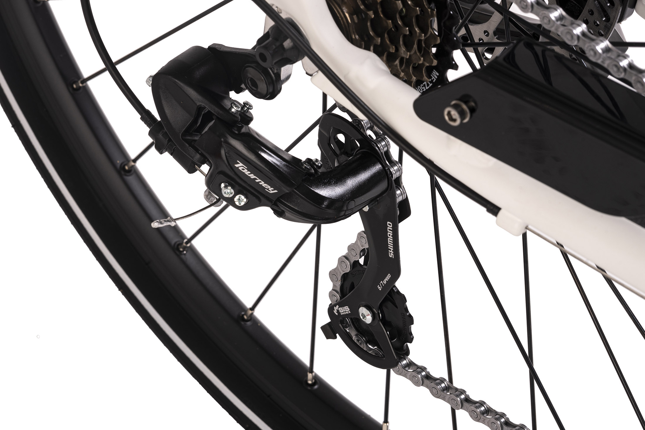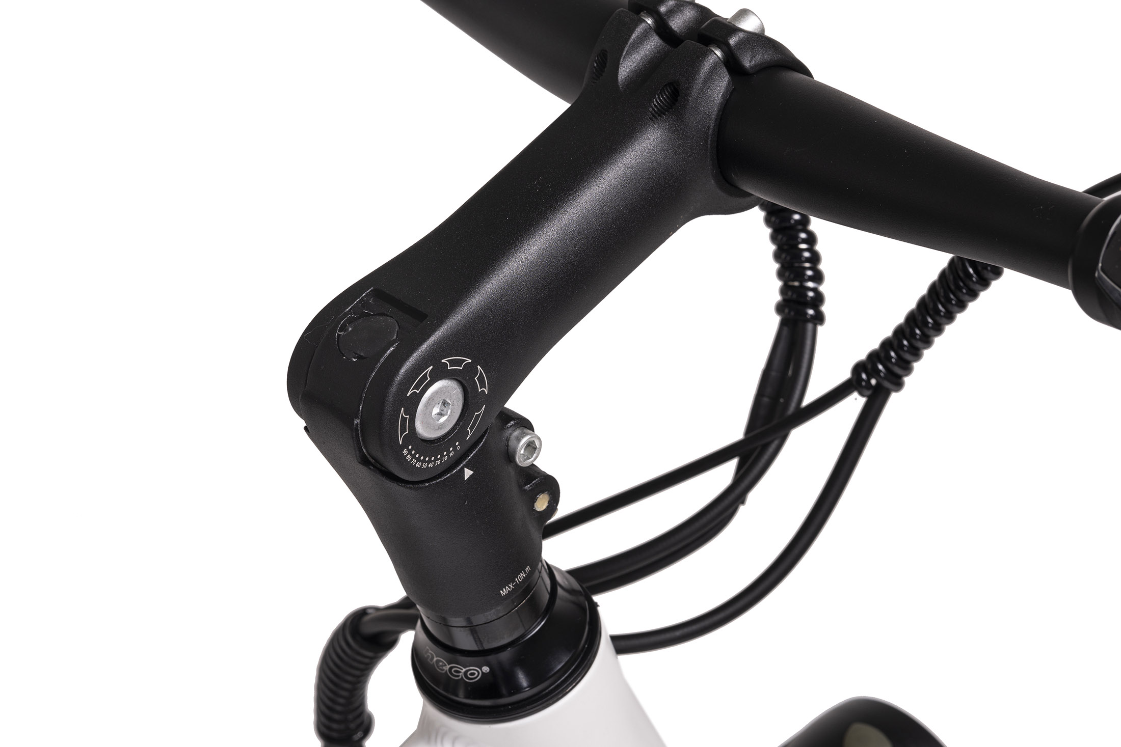 Quand vous n'en avez pas besoin, par exemple en descente ou sur du plat, vous pouvez également éteindre le système d'assistance et prolonger ainsi la performance de la batterie. Le vélo électrique fonctionne alors comme un VTC normal. En plus d'un dérailleur 7 vitesses et de freins à disques hydrauliques TEKTRO, le pedelec est équipé d'une potence Ahead.