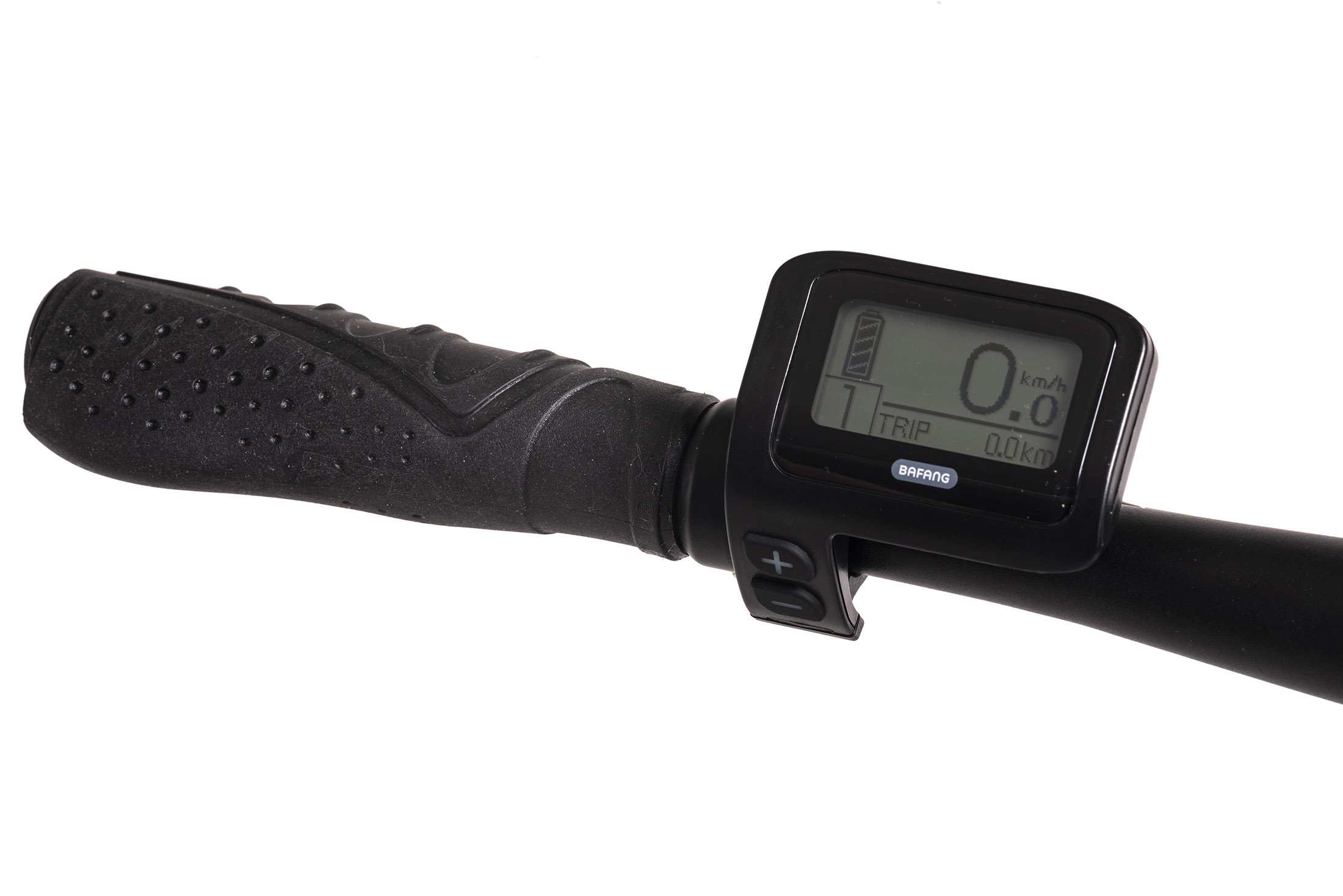 Le VTC est équipé d'un moteur sans balais sur le pédalier qui est activé par le boîtier présent sur le guidon. Ce moteur se coupe automatiquement à partir d'une vitesse de 25 km/h, comme le veut la législation. L'écran sur le quidon vous indique le niveau de la batterie, le niveau d'assistance, la vitesse, le nombre de kilomètres du jour, le nombre total de kilomètres parcourus, la vitesse maximale et la vitesse moyenne.