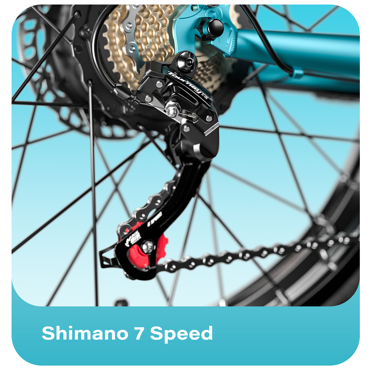 Conçu pour des performances de freinage fiables, le vélo à assistance électrique GUNAI-V est doté de freins à huile qui offrent une puissance de freinage réactive, essentielle pour maintenir la sécurité lors de trajets à grande vitesse ou d'arrêts soudains. L'intégration des engrenages Shimano à 7 vitesses améliore le contrôle et l'adaptabilité, permettant aux cyclistes d'ajuster sans effort leur rythme et leur cadence en fonction des exigences du terrain.