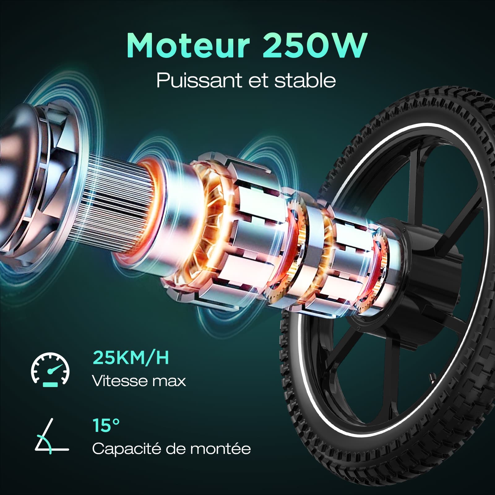 - Type de moteur: 16 pouces/engrenage à grande vitesse/ Roue intégrée moteur sans balais