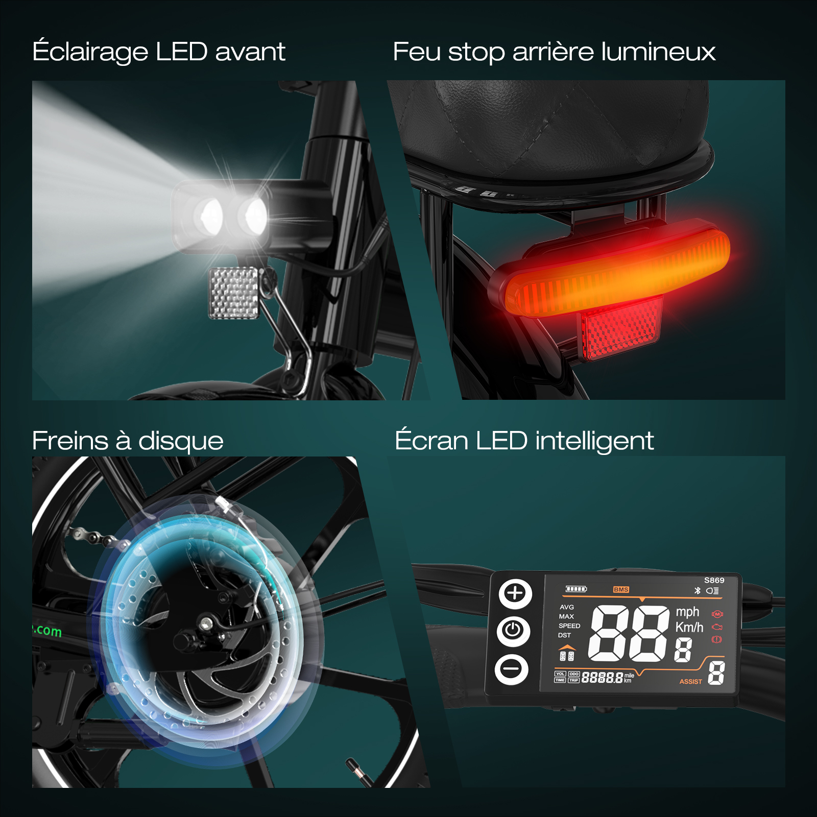 - Autonomie: 35KM-90KM (affecté par la charge, la température, les conditions routières, le mode de conduite, etc.)