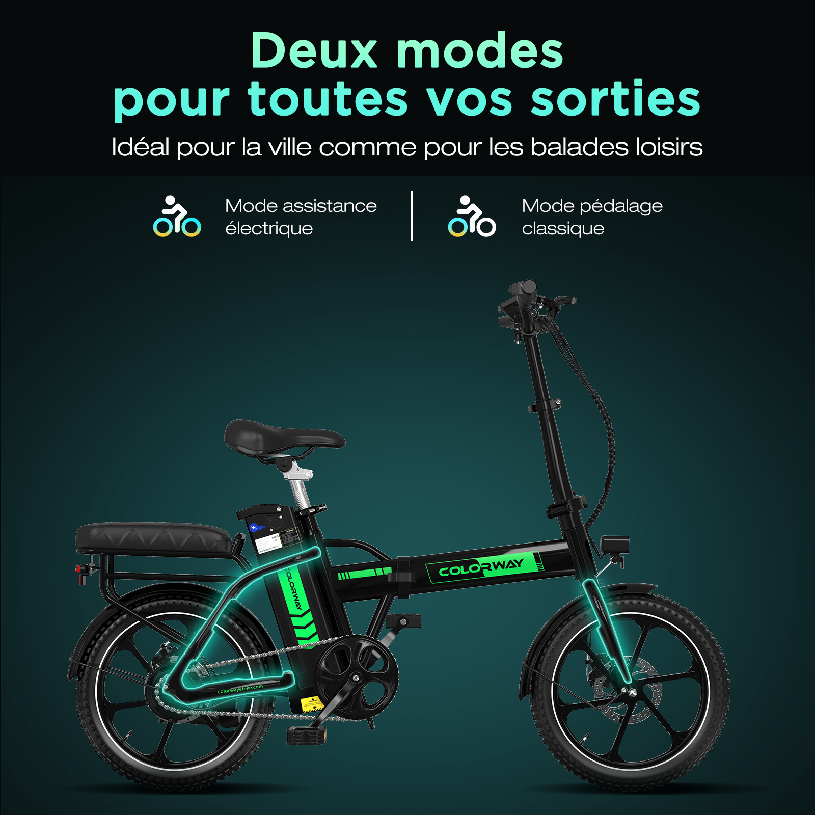 Vélo électrique pliable 16" COLORWAY - Batterie 36V12Ah - Pédalage assisté - Écran LCD - Noir