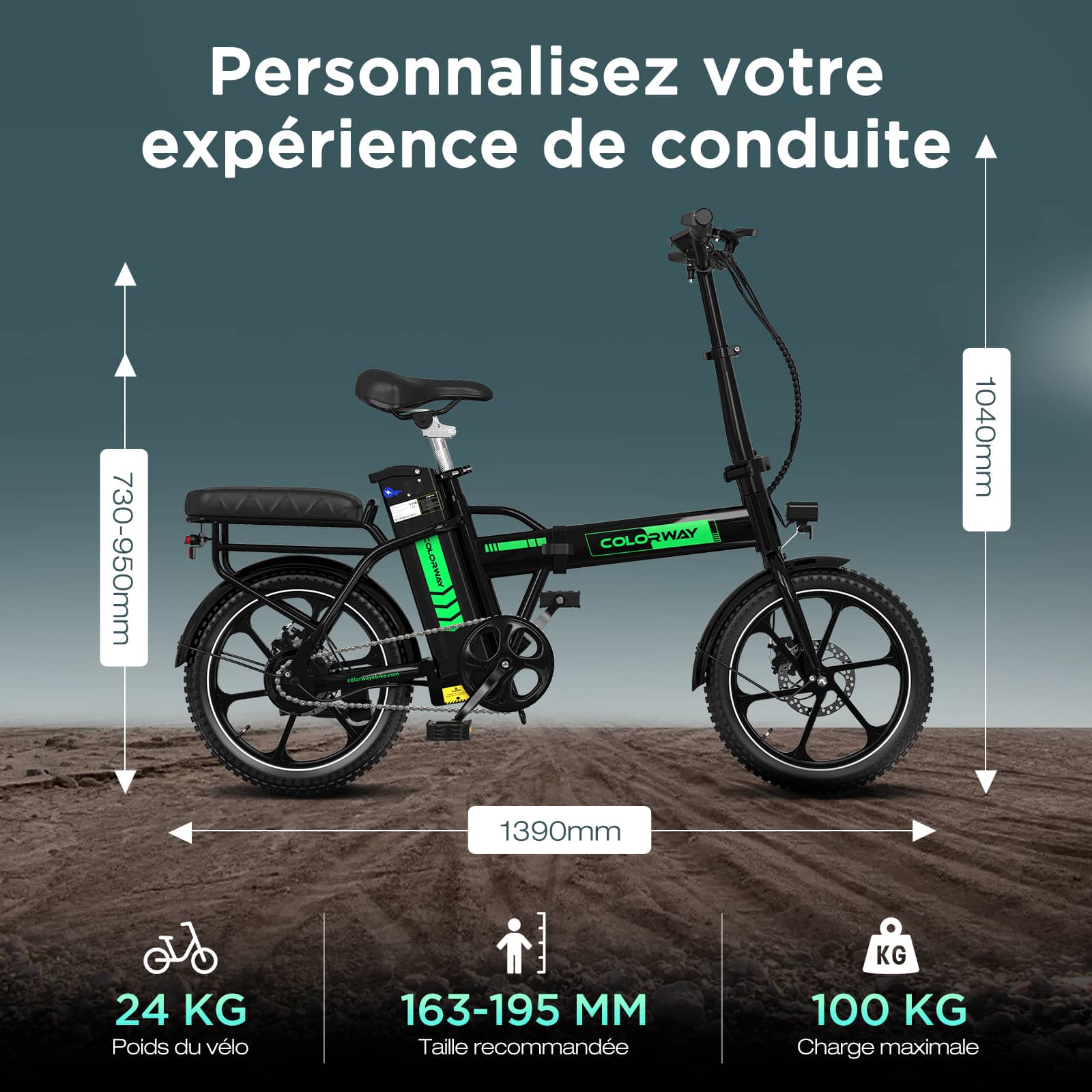 | Libellé | Vélo électrique pliable 16" COLORWAY - Batterie 36V12Ah - Pédalage assisté - Écran LCD - Noir |