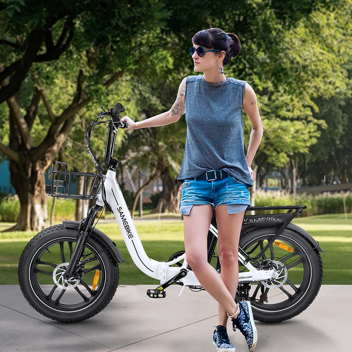 Vélo électrique pliable SAMEBIKE C05 Pro Step-through, 500 W, 36 V, 13 Ah, gros pneu, blanc