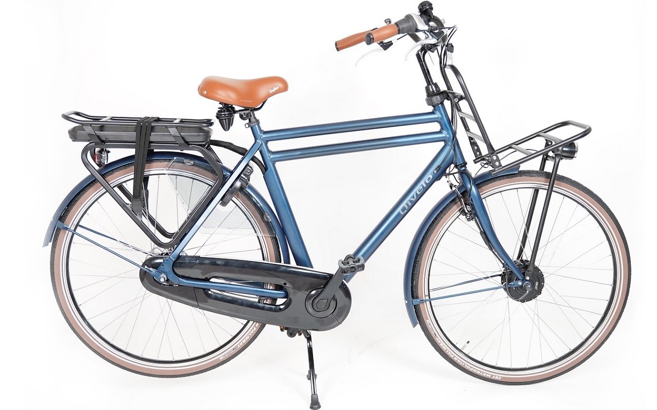 Vélo électrique de type hollandais (vélo de ville) et utilitaire, roues de 28'', très pratique avec sa plateforme avant et son porte-bagage arrière. Cadre haut taille 54 - M. Cycliste de 172 à 185 cm Couleur bleu. Moteur avant Bafang 250W avec batterie Li-Ion 14ah 36 V = 504Wh. Autonomie jusqu'à 80Km. Equipé en Shimano Nexus 3 vitesses. 5 niveau d'assistance. Poids 27Kg. Ce vélo électrique est équipé de tout le nécessaire pour une agréable balade à vélo. Compteur extra large et étendu, porte-bagage, grande autonomie, béquille de maintient du vélo et une selle confortable montée sur ressort.