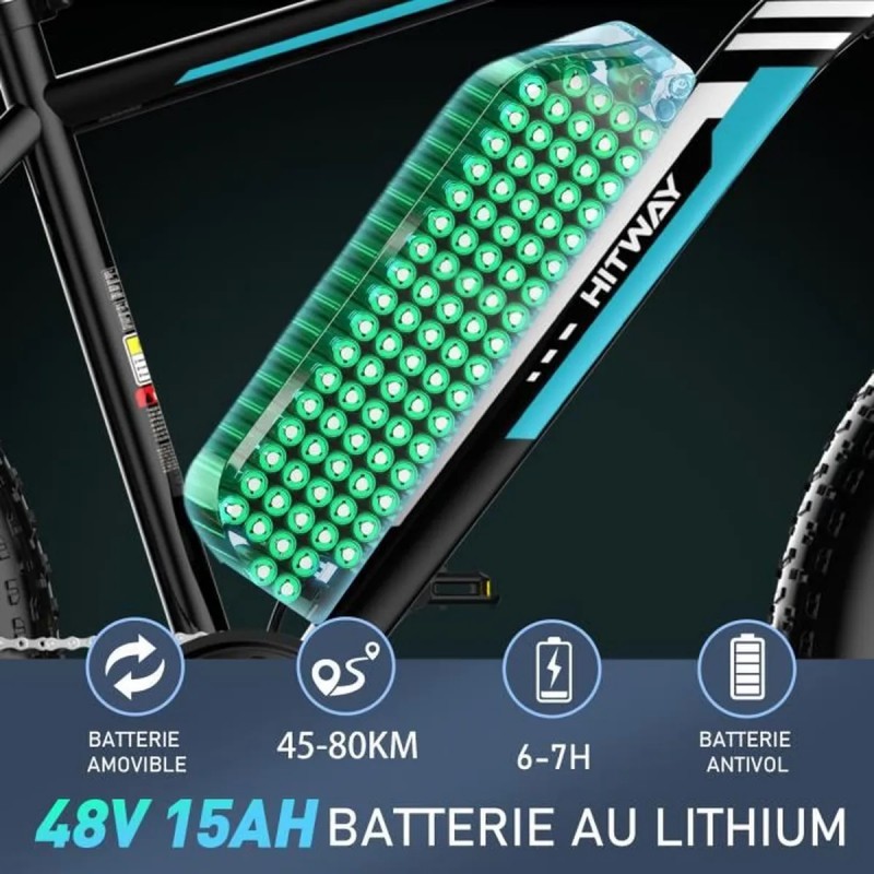 Libellé Vélo électrique VAE VTT HITWAY BK15 26x4 pouces - 250W - 15Ah