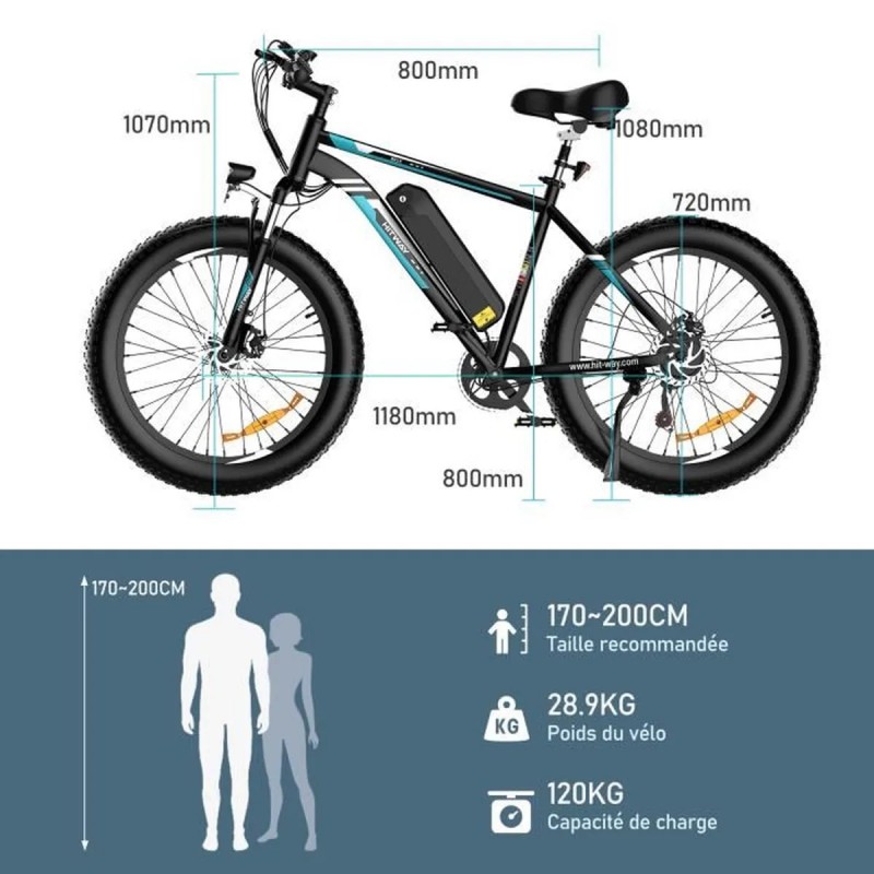 Vélo électrique VAE VTT HITWAY BK15 26x4 pouces - 250W - 15Ah