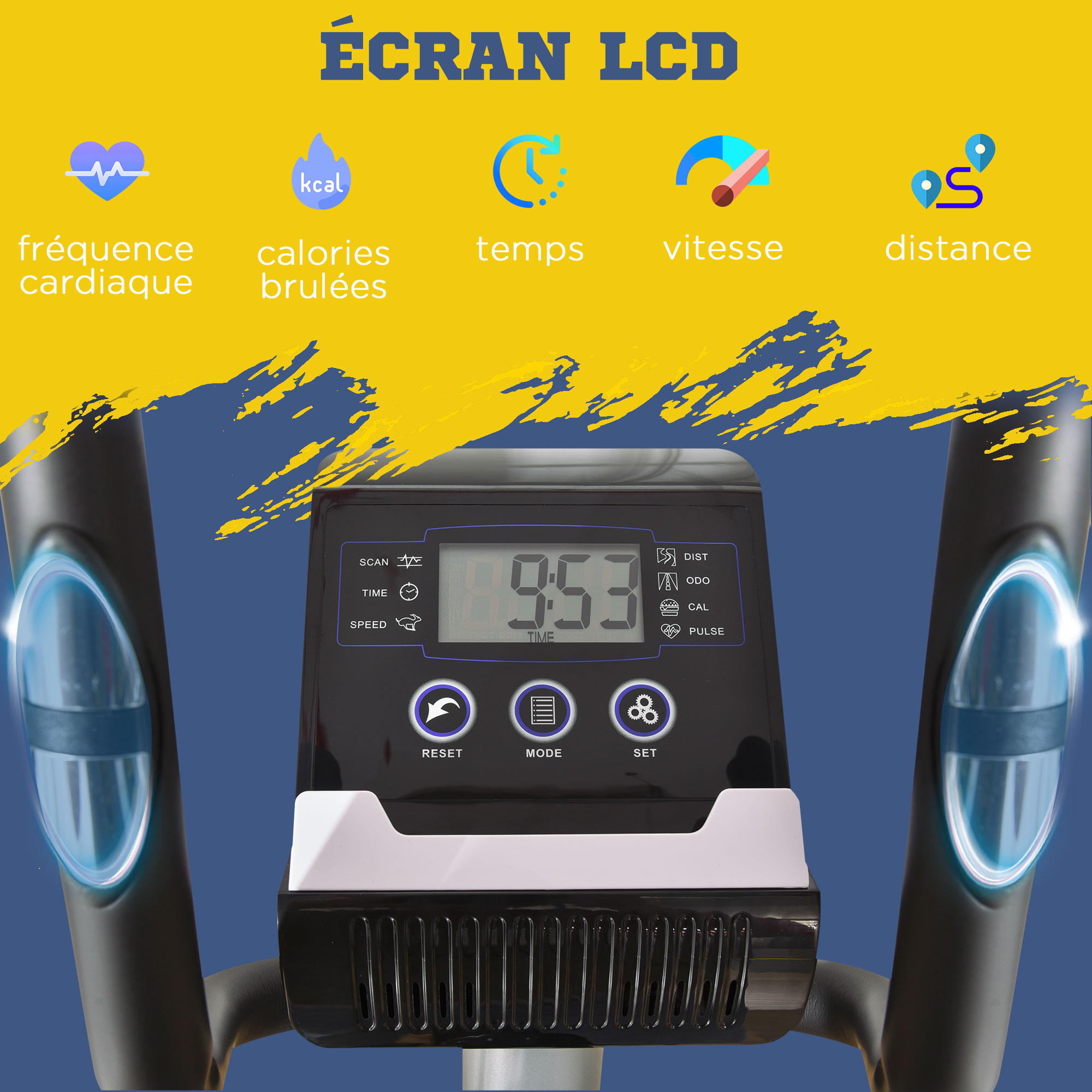 Vélo elliptique vertical vélo d'appartement 2 en 1 écran LCD multifonction hauteur & résistance réglable
