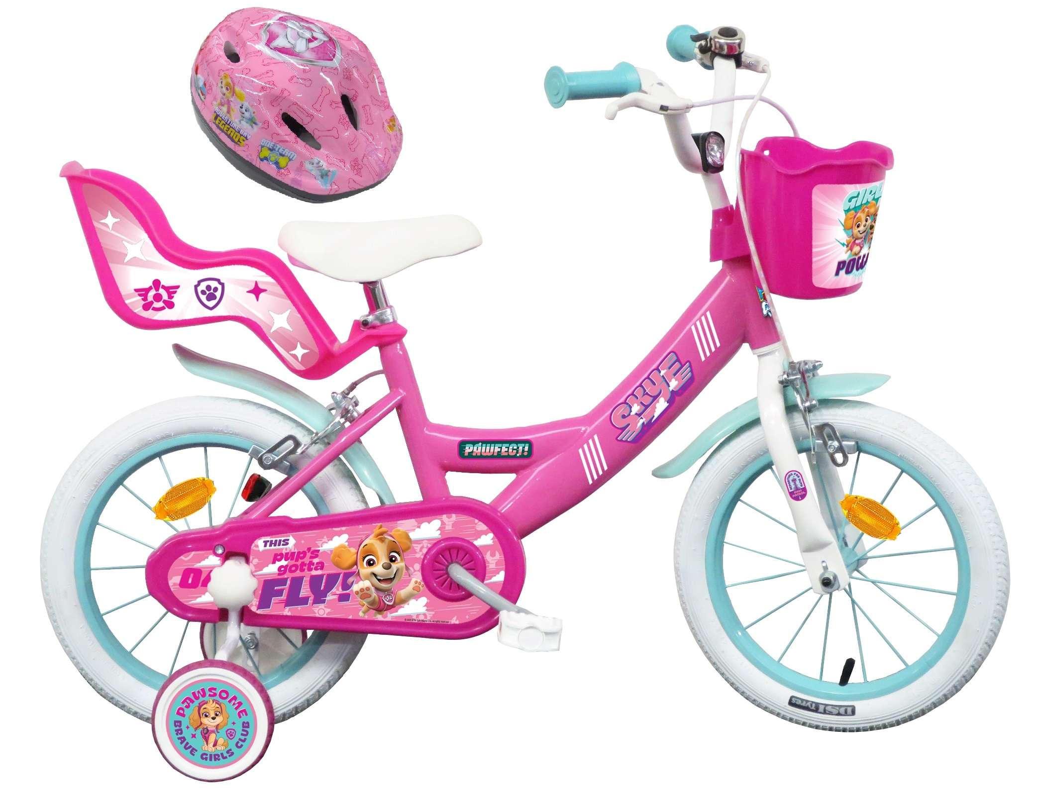 | Libellé | Vélo enfant - Modèle 16" Pat Patrouille à l'effigie de Stella + Casque pour enfant de 105/120 cm avec stabilisateurs - Panier - Porte Poupée |