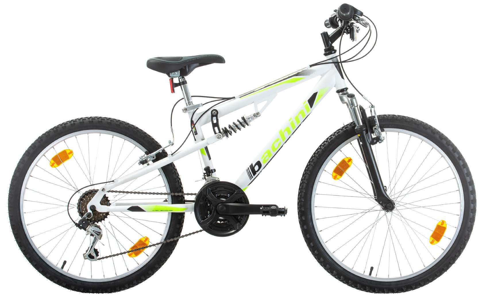 VTT 24'' Tout Suspendu - Cadre acier - Fourche Télescopique, 18 vitesses par poignées tournantes indexées Shimano SL-RS35, Dérailleur arrière Shimano SHIMANO TY21 TOURNEY, Dérailleur avant SHIMANO TOURNEY TY300, Roue libre Cassette SHIMANO MF-TZ500-6 6-SPEED 14-16-18-21-24-28T, Chaine KMC HV-408, Pédales XERAMA SP-872N, Pédalier PROWHEEL TA-CQ01 ALL 3/32x24/34/42T,152mm, Pneus WHEEL 24-507, Pneus KENDA MTB 24x1.95, Jantes WHEEL 24-507, Selle ACTIVE DDK, Tige de selle SEAT POST STEEL 25.4x200x1,4T THREADED CP, Pédalier PROWHEEL TA-CQ01 ALL 3/32x24/34/42T,152mm, Cuvette de direction NECO H842BK, Guidon LOGAN 580mm