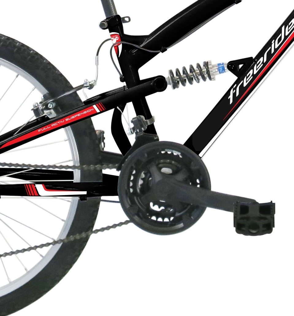 Vélo enfant - VTT 24'' Tout Suspendu "FREERIDER" - Cadre acier suspendu - Freins V Brake - 18 Vitesses -