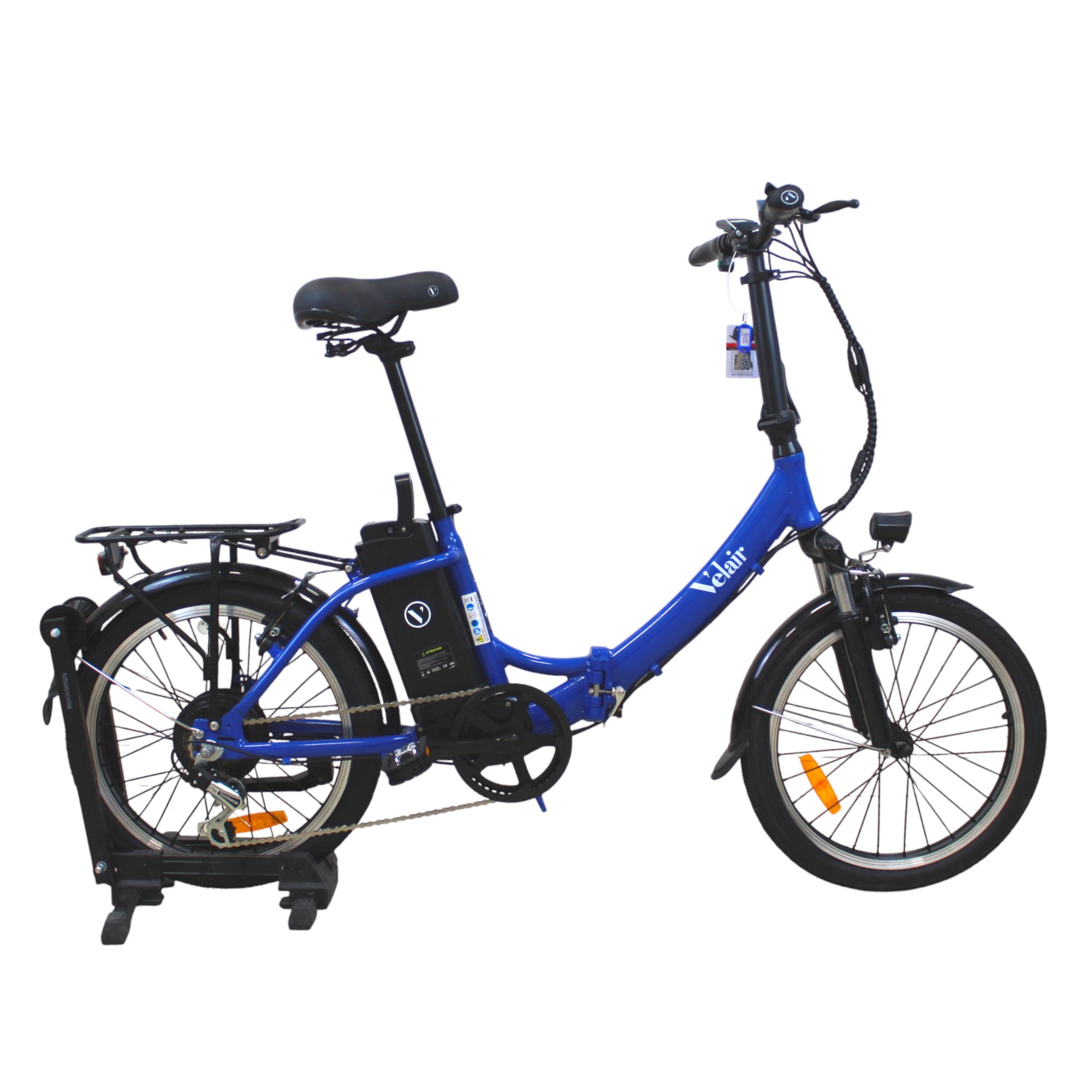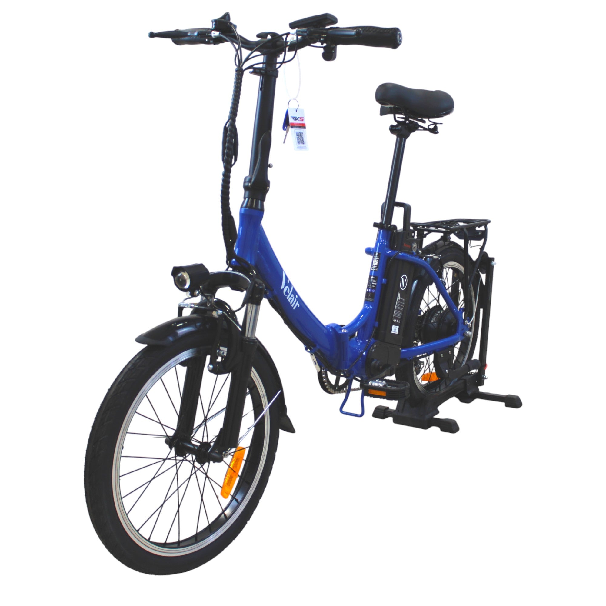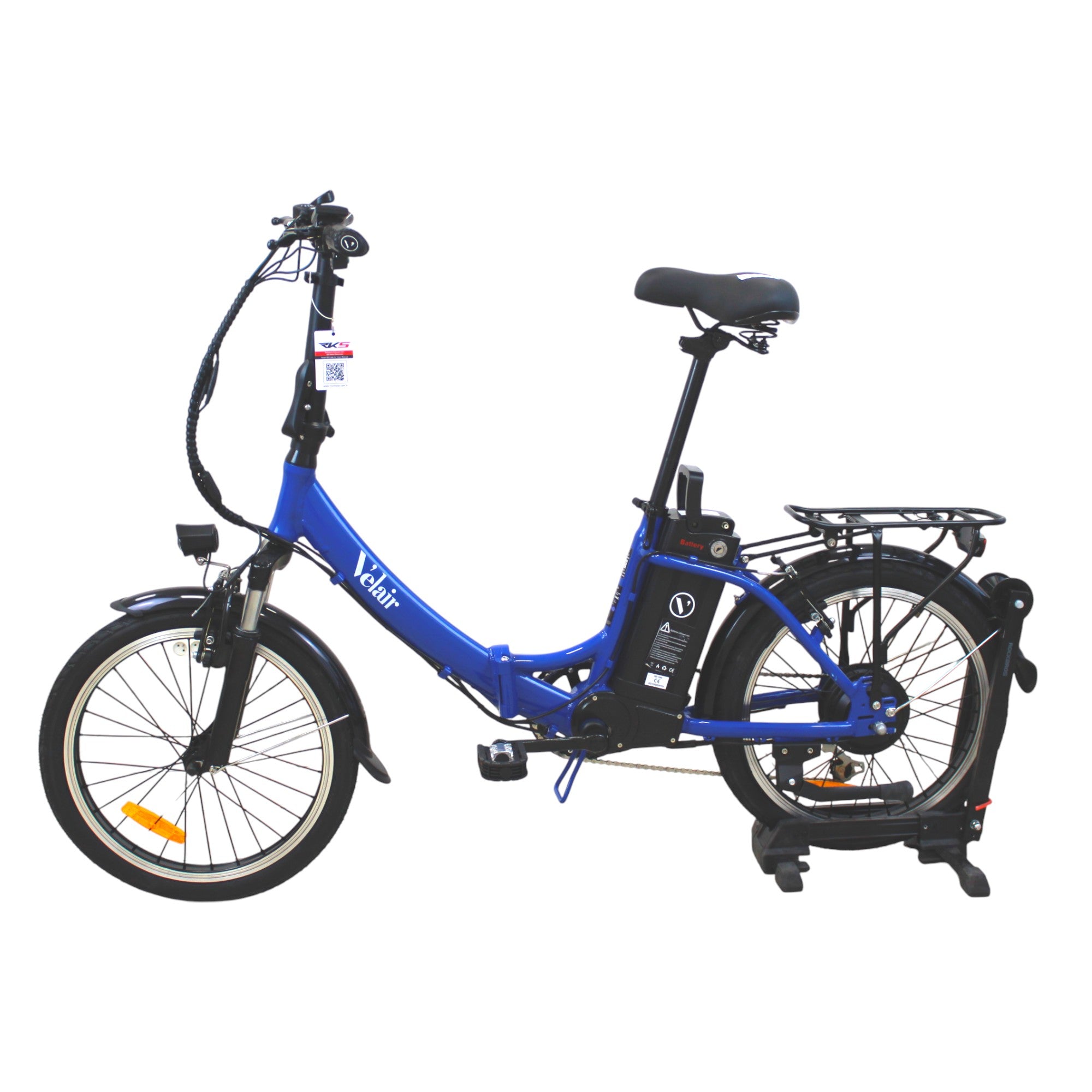Marque : Velair Modèle : Urban Cadre : enjambement bas Couleur : bleu Année : 2022 Poids : 24kg Taille : unique (pour cycliste mesurant entre 160 et 180cm) Kilométrage : 0km Autonomie : 50km Usage: Vélo de ville Vitesse maximale: 25km/h Dimension pliée: 89*35*76 cm Batterie: 36V - 10,4 Ah - 374 Wh Moteur: RKS Position moteur: Roue arrière Couple moteur: 40Nm Display: LCD Taille des roues: 20" Pneus: Kenda Fourche: rigide Freins: Patins - Mécaniques Nombre de vitesse: 6 vitesses Système de transmission: Dérailleur Marque et modèle de transmission: Shimano Tourney Transmission: Chaîne