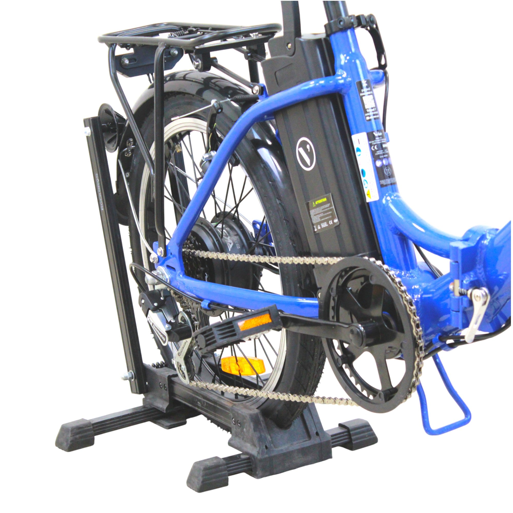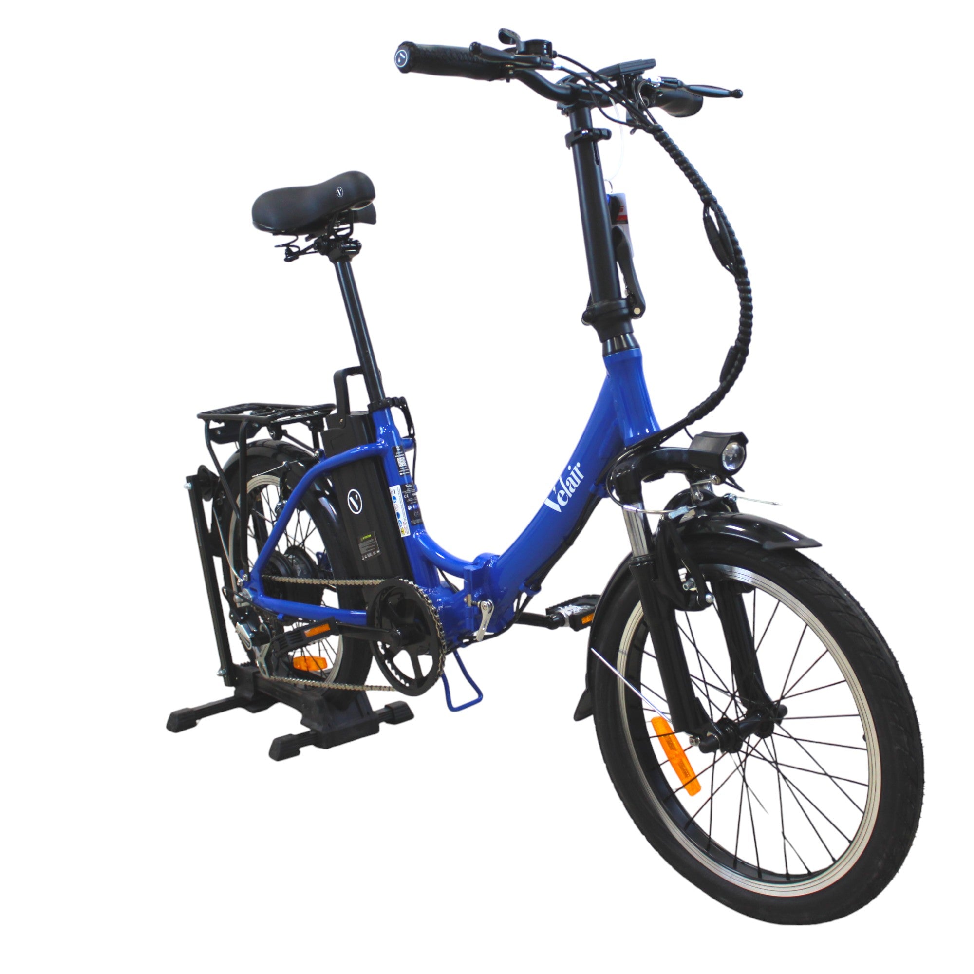 Plus produit Vélair Urban, vélo pliant électrique à cadre aluminium et enjambement bas, conçu pour les trajets urbains. Autonomie jusqu'à 50 km et assistance limitée à 25 km/h avec moteur roue arrière RKS (40 Nm) et batterie 36 V 10,4 Ah (374 Wh). Transmission 6 vitesses Shimano Tourney, freins mécaniques à patins, pneus Kenda et roues 20" pour maniabilité. Se replie compact (89 x 35 x 76 cm), poids 24 kg, capacité maximale 110 kg, adapté aux cyclistes de 160–180 cm.