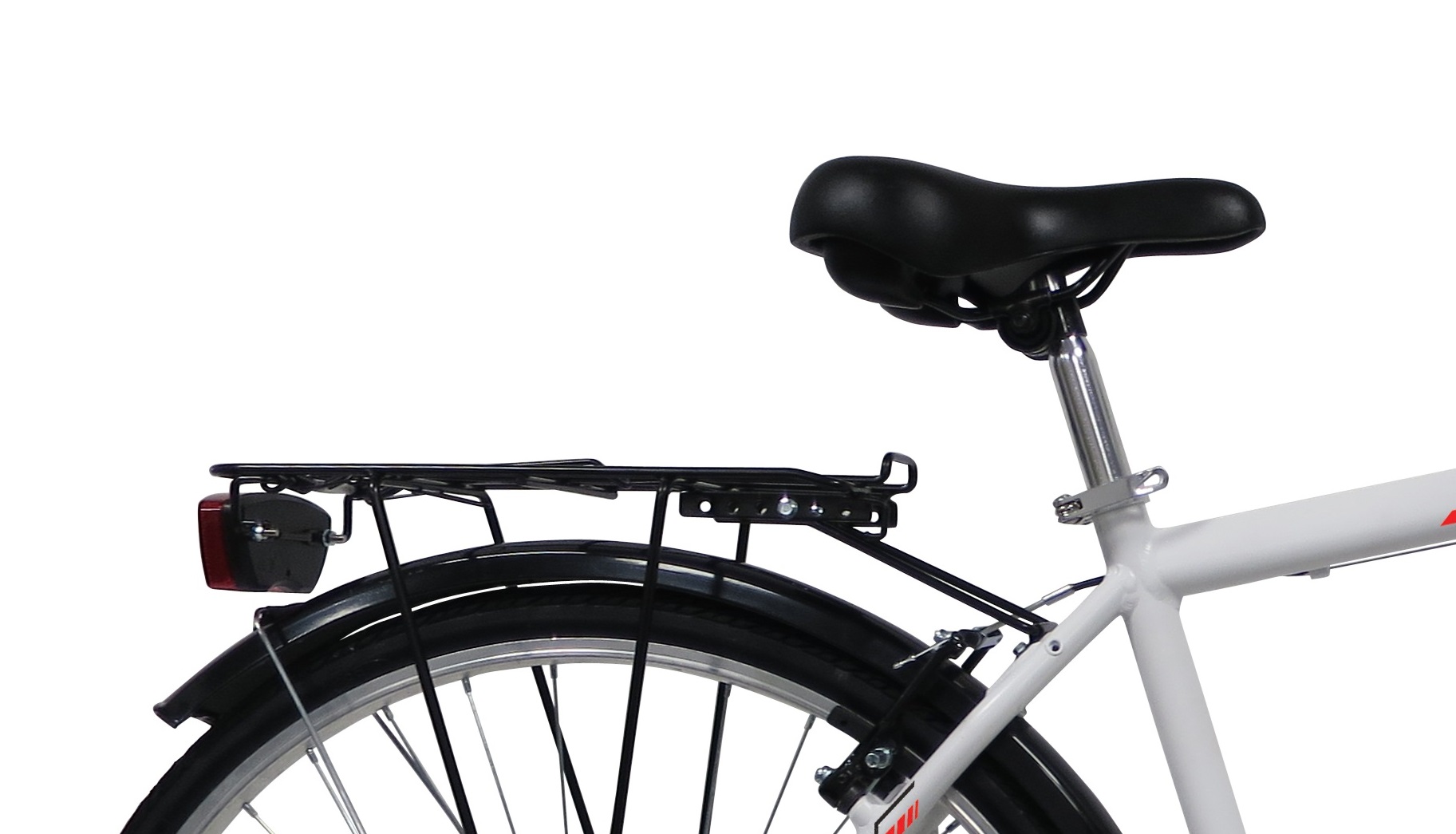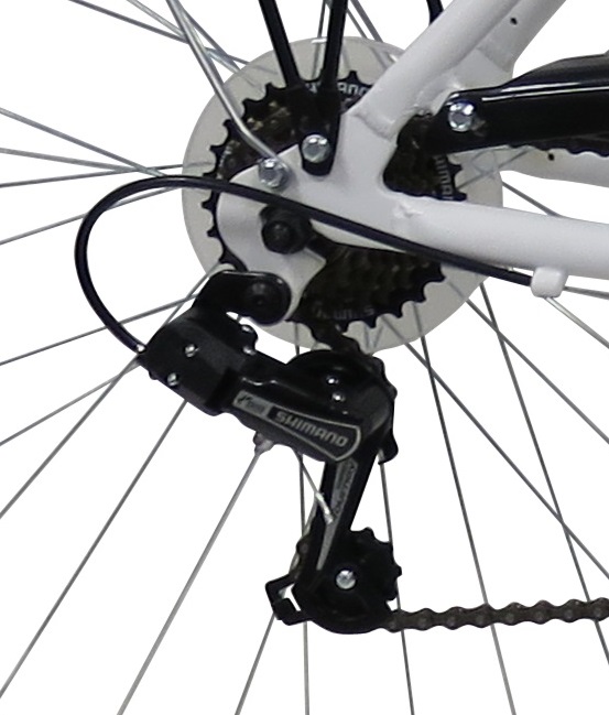 VTC 28 Country Homme - Cadre alu rigide - Fourche rigide - 21 vitesses par poignées tournantes Revoshift Shimano - Freins avant et arrière V BRAKE avec étriers & Leviers aluminium - Dérailleur arrière TY21 et avant Shimano TZ30 - Potence réglable - Jantes aluminium & pneus noirs - Gardes boue - Porte bagages - Béquille - Carter - Selle confort - Sonnette - Eclairage à piles fournies.
