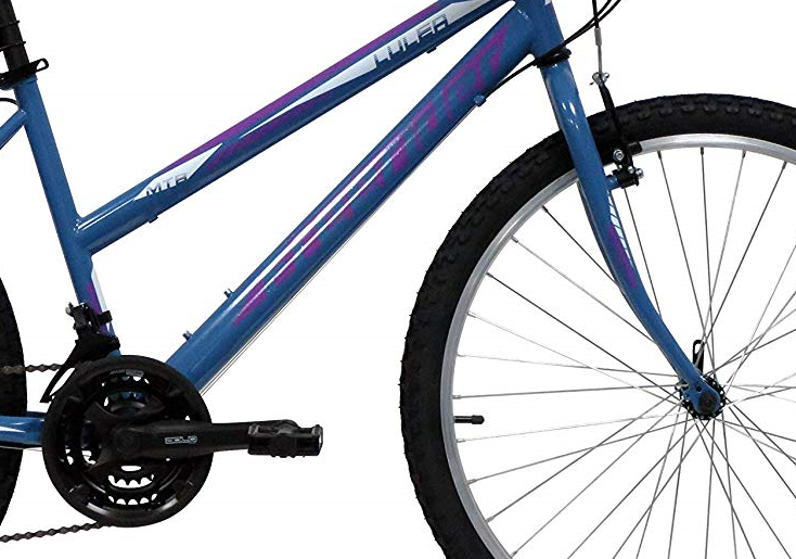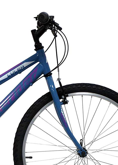 Vélo VTT 26 Lulea/Freerider Femme - Cadre acier rigide - Fourche rigide - 18 vitesses par poignées tournantes - Dérailleur arrière indexé - Potence plongeur - Freins avant et arrière V BRAKE avec étriers acier & Leviers en résine noire - Jantes aluminium avec attache rapide avant & pneus noirs - Blocage rapide tige de selle - Sonnette - Eclairage à piles fournies.