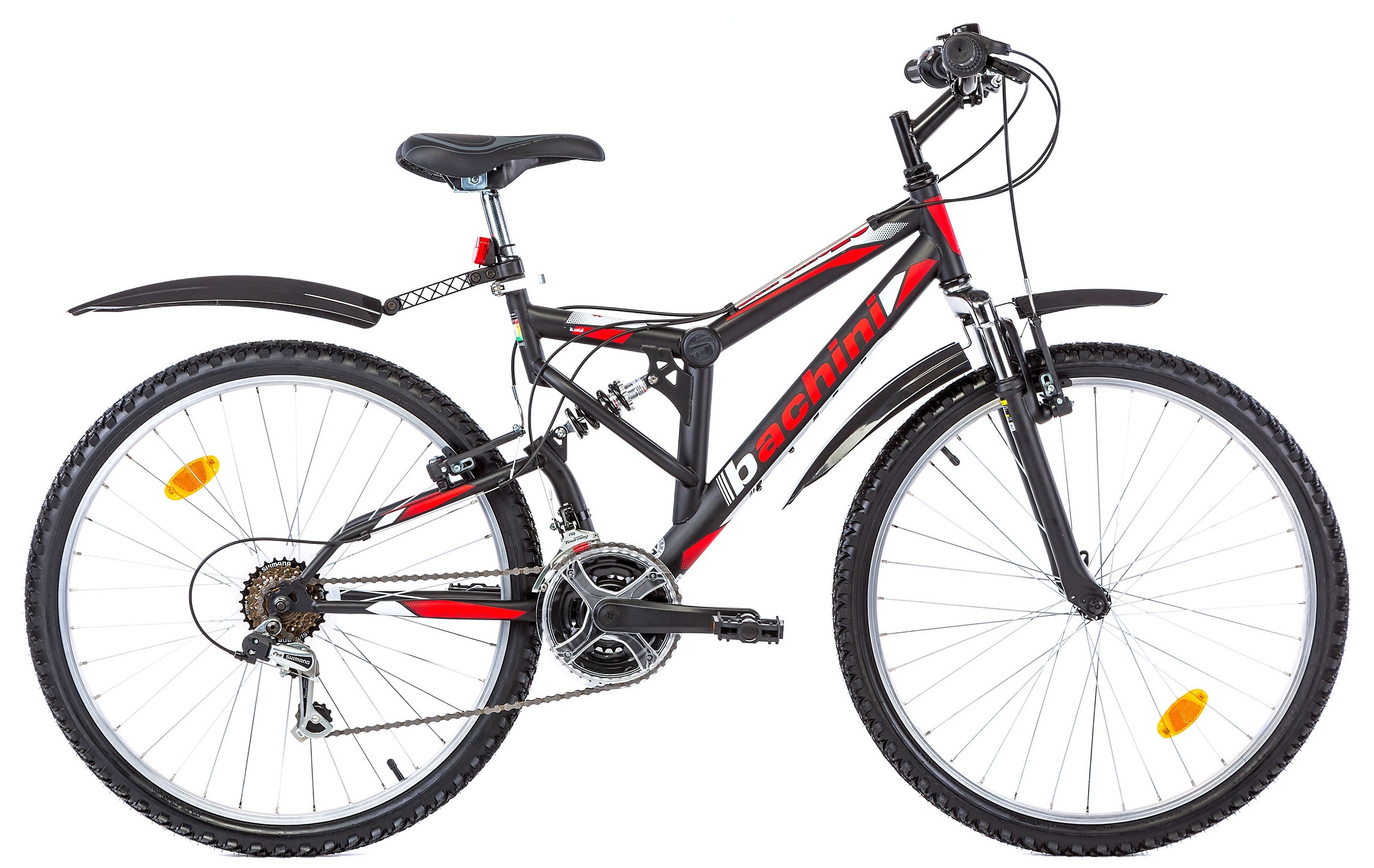 Ce VTT est équipé d'un cadre en acier 26 pouces avec amortisseur central, fourche à suspension, 18 vitesses, freins V-Brake en composite noire, système attache rapide sur la roue avant ainsi que sur la tige de selle, changement de vitesse par poignées tournantes indéxées Shimano SL-RS35, Dérailleur arrière Shimano SHIMANO TY21 TOURNEY, Dérailleur avant SHIMANO TOURNEY TY300, Roue libre Cassette SHIMANO MF-TZ500-6 (6-SPEED 14-16-18-21-24-28T). Le montage à 85% vous permettra d'assembler le vélo en quelques minutes en montant la roue avant sans outils grace à son attache rapide, positionner le guidon et le serrer et tout simplement visser les pédales. L' emballage renforcé assure une protection supplémentaire. La dimension de la roue est de 26 pouces avec des jantes en aluminium et des pneus noirs Kenda 26'' x 1.95.Ce produit est conforme aux exigences de sécurité. Il est fabriqué en Union européenne en conformité avec les règlements de l’UE fixant les exigences de sécurité concernant les bicyclettes.Le constructeur est certifié à la norme ISO 9001:2008