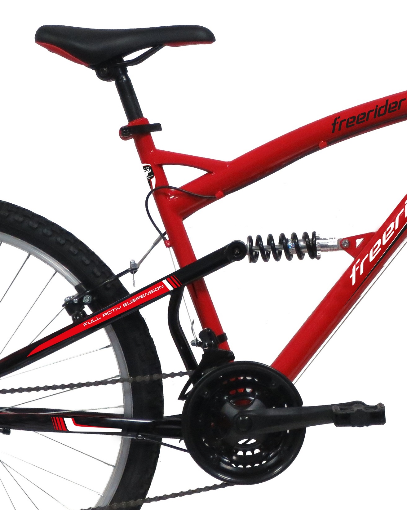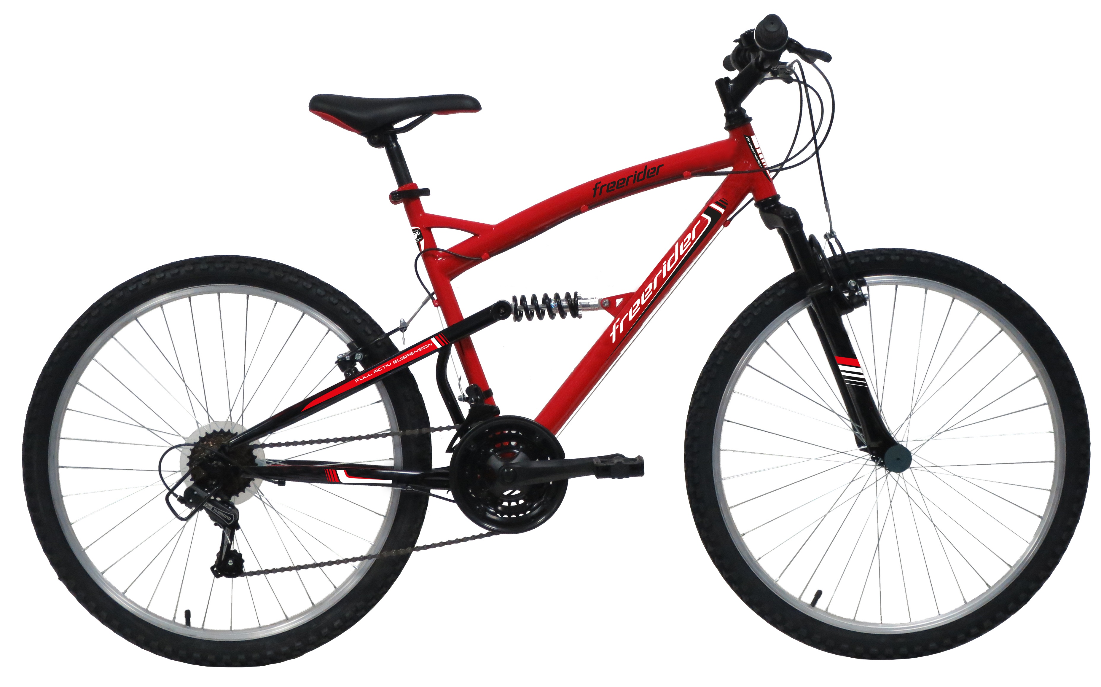 Libellé Vélo VTT 26'' Tout Suspendu Homme "Freerider" - Cadre Acier - 18 Vitesses - Dérailleur arrière Shimano - Freins V-Brake - Fourche télescopique
