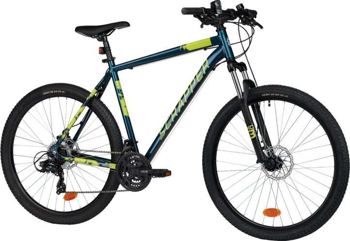 Vélo VTT 27,5'' Homme "Scrapper XC 3.1 LTD" - Cadre Alu rigide - Fourche télescopique - 21 Vitesses par poignées à gâchettes Shimano - Roue libre 7 vitesses Shimano - Dérailleur arrière Shimano TY300 - Potence Headset Alu - Frein avant et arrière à disque mécanique - Jantes Alu double parois & pneus noirs - Sonnette - Eclairage à piles fournies - Taille L : (175cm-185cm) - Poids net de 14,30 Kg. Ce VTT est idéal pour des randonnées sportives occasionnelles.