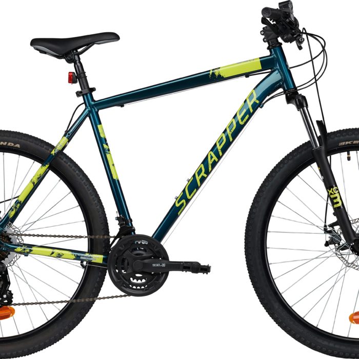 Vélo VTT 27,5'' Homme "Scrapper XC 3.1 LTD" - Cadre Alu rigide - Fourche télescopique - 21 Vitesses par poignées à gâchettes Shimano - Roue libre 7 vitesses Shimano - Dérailleur arrière Shimano TY300 - Potence Headset Alu - Frein avant et arrière à disque mécanique - Jantes Alu double parois & pneus noirs - Sonnette - Eclairage à piles fournies - Taille L : (175cm-185cm) - Poids net de 14,30 Kg. Ce VTT est idéal pour des randonnées sportives occasionnelles.